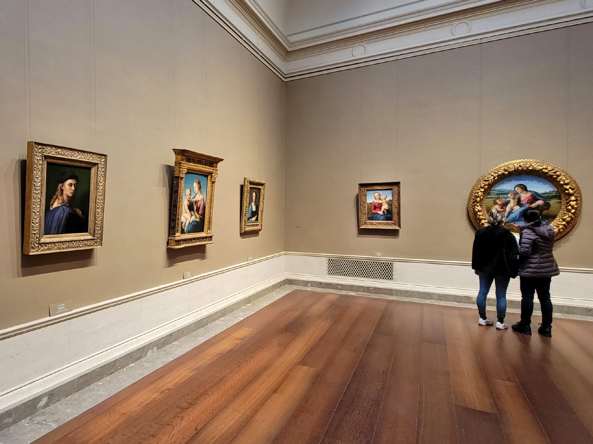 20번 전시실에는 레오나르도, 미켈란젤로와 함께 르네상스의 3대 거장이라는 라파엘(Raphael)의 그림이 여러 점 걸려있는데, 아내와 지혜가 동그란 화폭의 The Alba Madonna 그림을 감상하고 있다. 사실 미국땅에 딱 하나밖에 없다는 레오나르도의 그림을 보고 났더니, 여러 점이 걸려있는 라파엘의 그림은 눈에 잘 안들어 오고, 이사 온 집의 리모델링 공사를 앞둔 위기주부는 이 미술관의 럭셔리한 원목 마룻바닥에 더 눈이 갔다.^^