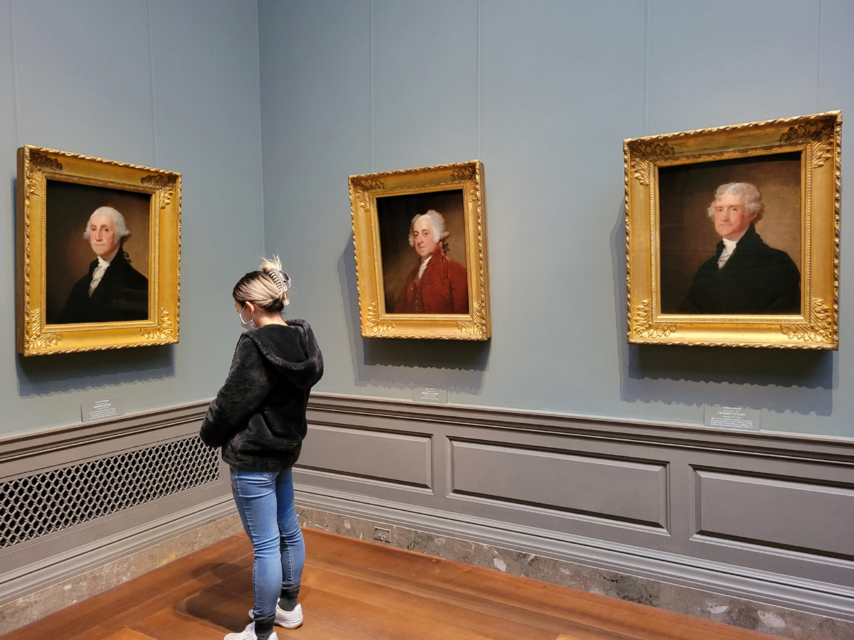 미국회화 전시실에서 미국의 1~3대 대통령의 초상화를 자세히 보고있는 지혜의 모습이다. 가운데가 이 3명 중에서는 가장 존재감이 없는 제2대 대통령인 존 애덤스(John Adams)인데, 소위 역사상 '세계 최초의 부통령'이라는 타이틀을 가지고 있는 것으로 유명하다.^^