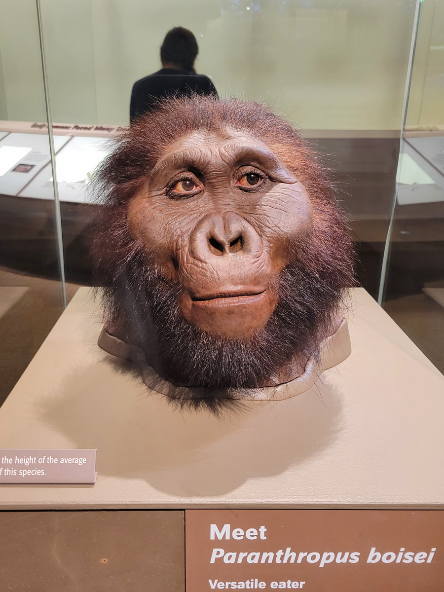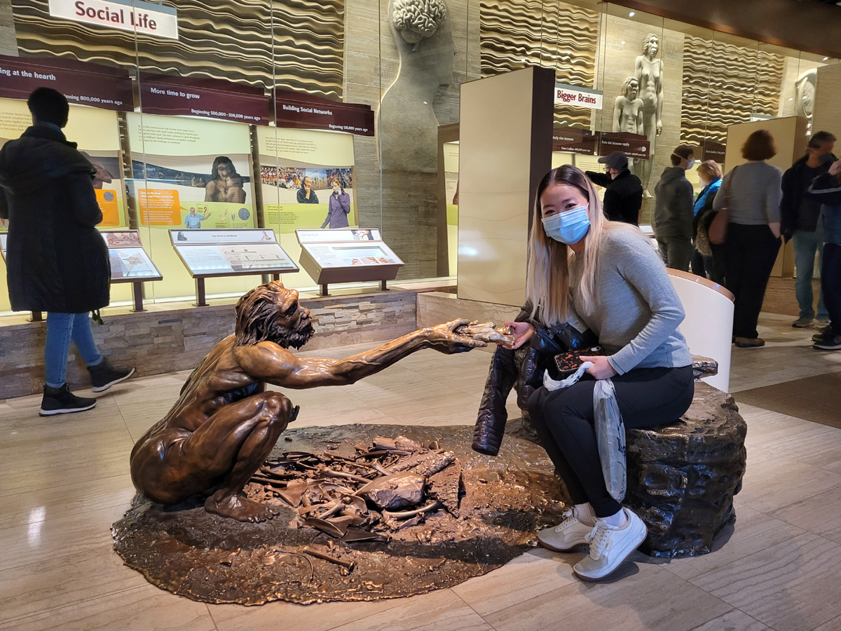 포유류 전시관을 통과하면, 지혜가 아주 관심을 가지고 꼼꼼히 구경을 했던 '인간의 기원(Human Origin)' 전시실이 나온다. 전세계에서 발굴된 원시인들의 해골을 아주 많이 전시해 놓았는데, 재미있는 것은 해골 사진을 찍으려고 스마트폰을 갖다 대면 사람의 얼굴로 인식이 되어 작은 사각형이 화면에 뜬다는 것이었다.^^ 또 그냥 이렇게 해골들만 전시를 해놓은 것이 아니라,