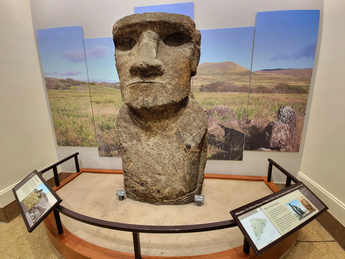 지하로 내려가서 뒷문 출구로 나가는 곳 옆에 모아이(Moai) 석상이 서있다. 영화 <박물관이 살아있다> Night at the Museum 시리즈에 등장했던 그 껌을 좋아하는 "Dum Dum"을 실제로 본 것으로 생각했는데, 덤덤은 뉴욕의 미국자연사박물관(American Museum of Natural History)을 배경으로 했던 1편에 나온 다른 모아이 석상이었고, 워싱턴을 배경으로 한 2편에서는 이 모아이 석상은 나오지 않은 것으로 확인되었다.^^ 뉴욕이라고 하니까, 올여름에는 뉴욕도 오래간만에 한 번 가볼 수 있겠다는 생각이 든다~