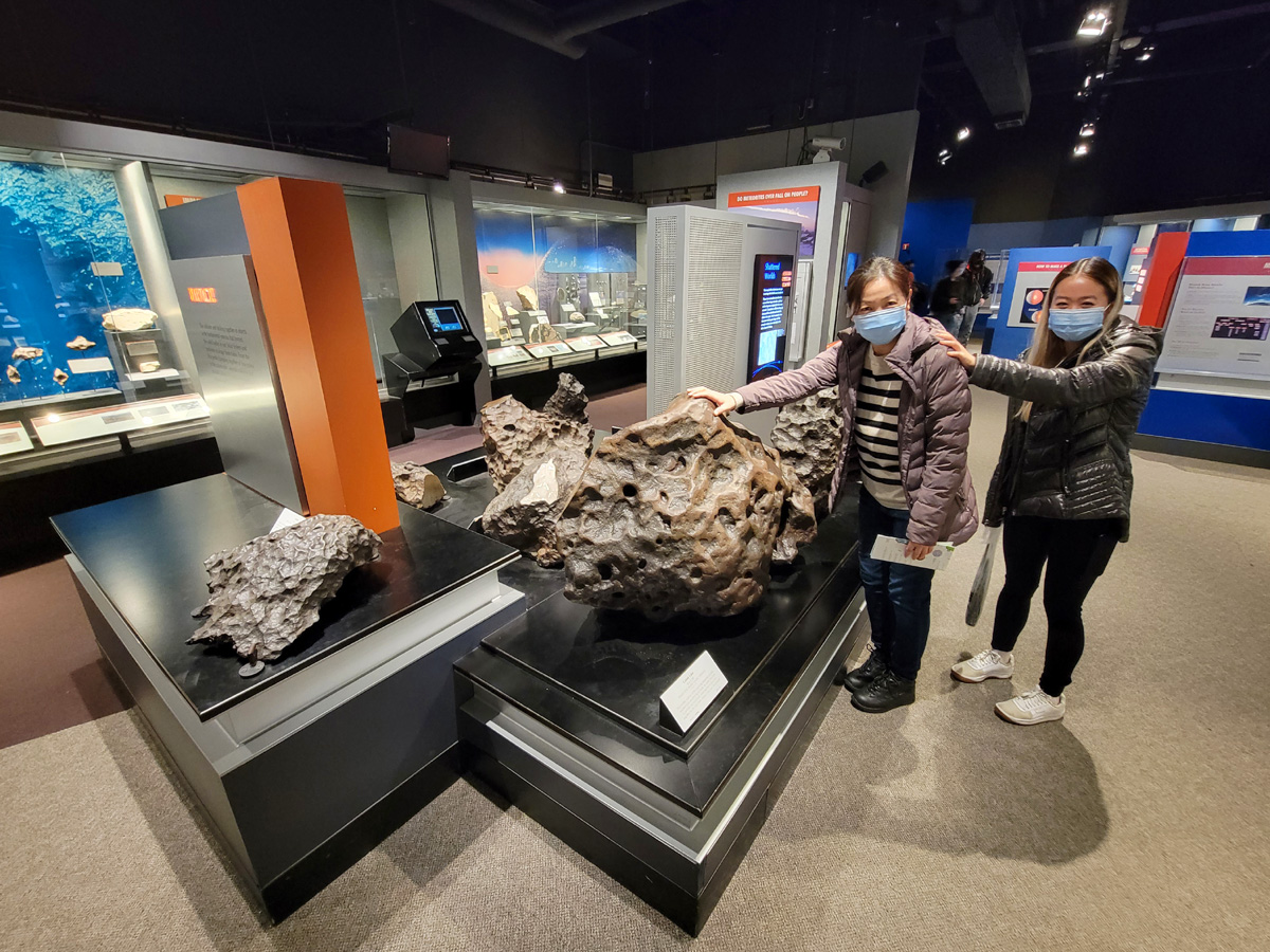 운석을 만지고 있는 엄마와 엄마를 만지고 있는 딸... 영화 <아바타>의 나비족처럼 서로의 어깨에 손을 올려서, 우주의 기운으로 하나가 된 모녀의 모습이다.