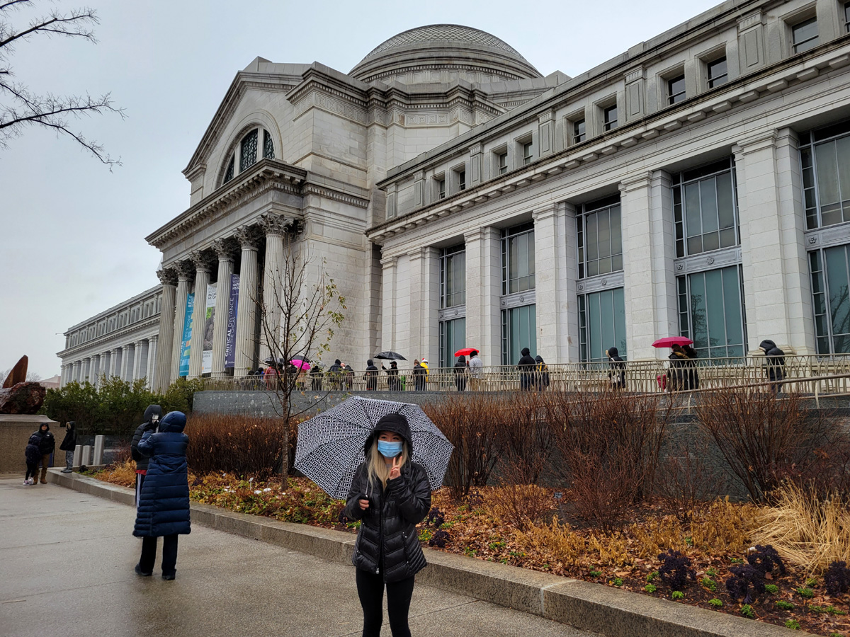 겨울방학을 마치고 지혜가 학교로 다시 돌아가기 전의 마지막 일요일, 겨울비가 내리는 쌀쌀한 날씨였지만 그래도 한 곳은 더 짧게라도 구경을 하러 나가는 것이 좋겠다는 생각에 점심을 간단히 사먹고는 워싱턴DC로 또 차를 몰았다. 모녀가 합의해서 결정한 이 날의 방문지는 내셔널몰(National Mall)에서 가장 인기있고 방문객이 많은 장소인 국립 자연사박물관(National Museum of Natural History)으로, 스미스소니언 재단(Smithsonian Institution)이 직접 운영하는 20개의 박물관들 중에서 가장 유명한 곳이다.