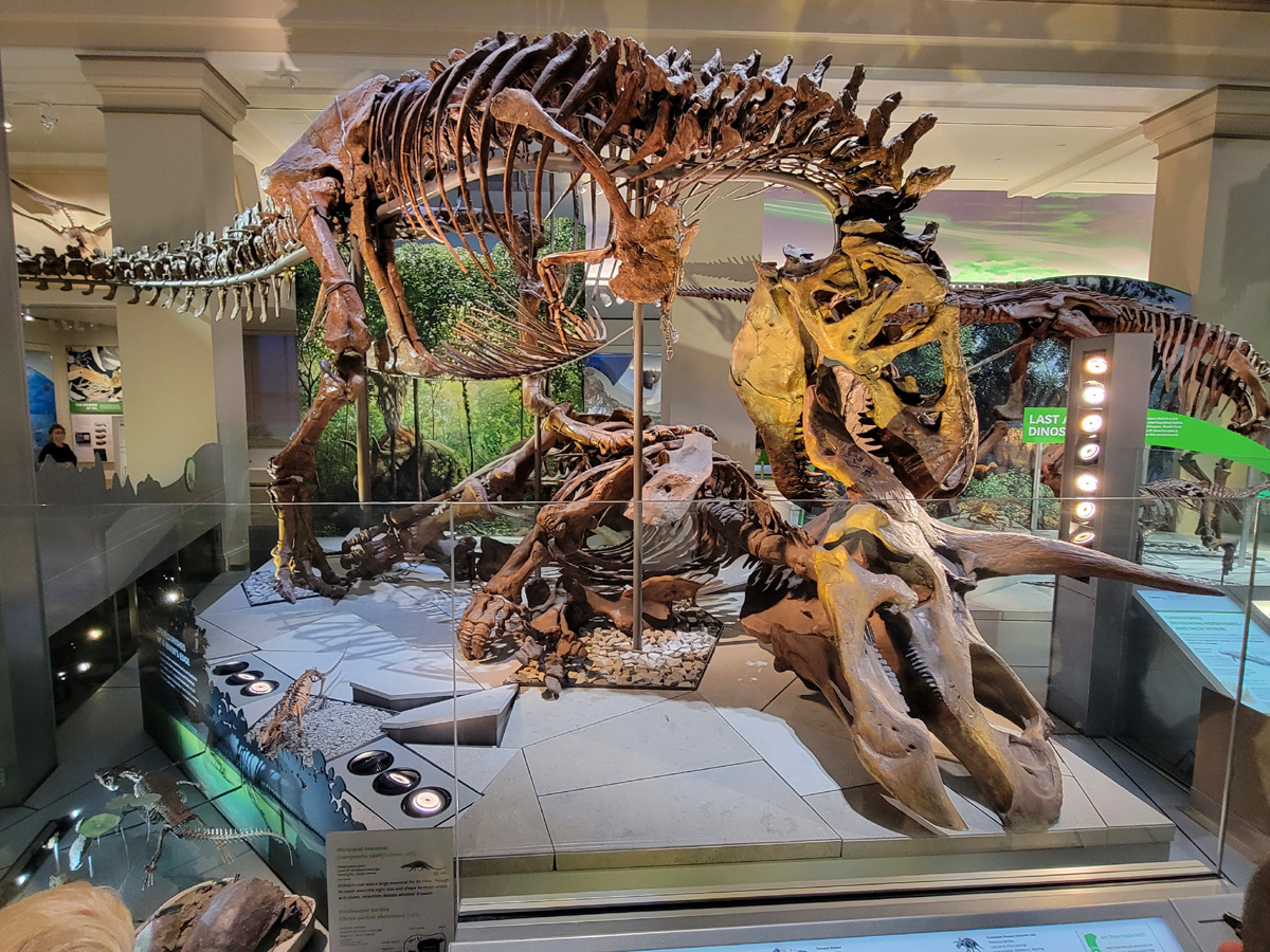 옛날 포스팅의 사진을 보면 티라노사우루스가 저 초식공룡을 노려만 보고 있었는데, 지금은 이렇게 잡아먹고 있는 모습으로 바꿔서 전시를 해놓았다.