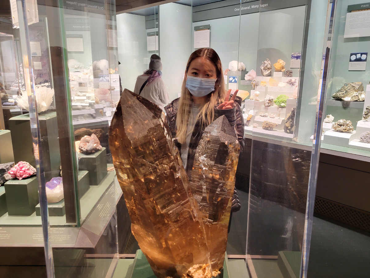 보석 전시실을 나오면 넓은 광물 전시실이 나오는데, V자 모양의 수정기둥 뒤에서 V자를 하고 있는 우리집 보석...