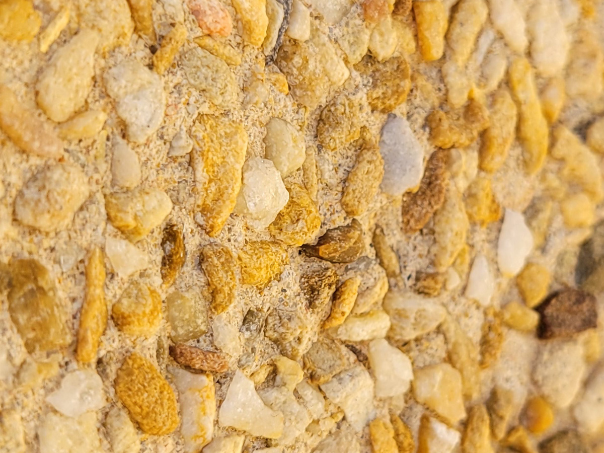 이렇게 굵은 노란 돌들이 콘크리트 모래에 박혀있어서 질감과 색깔이 상당히 특이한 느낌이었다.