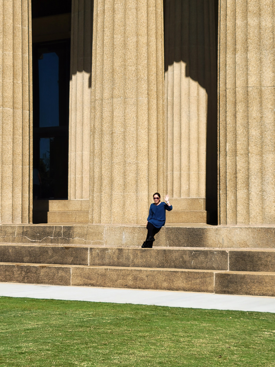 저기 '가짜' 파르테논 신전의 기둥 아래에서 손을 흔드는 아내는, 옛날에 진짜 파르테논 신전에도 가보신 적이 있단다.
