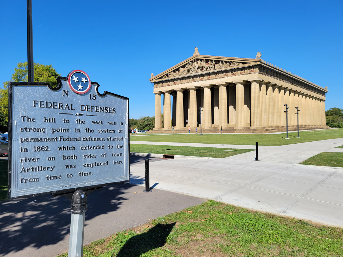 주차한 곳으로 돌아가는 길에 테네시 주에서 세워놓은 역사 안내판이 보였는데, 이 공원이 있는 언덕에 연방정부 차원의 요새가 있었다는 내용이다. 다시 차에 올라서는 일단 시내 중심가쪽으로 운전을 해서 가보기로 했다.