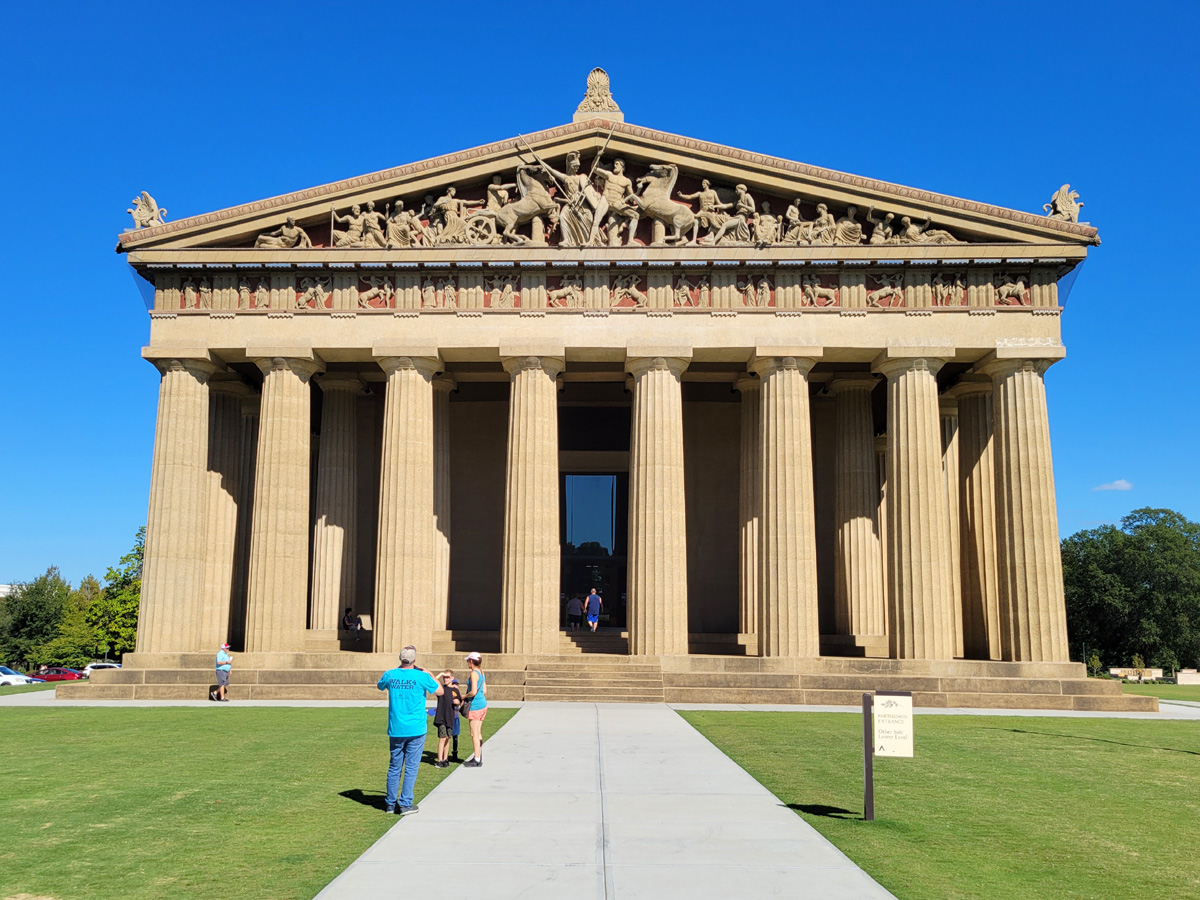 내슈빌에서 두번째로 찾은 곳은 밴더빌트 대학교 근처에 있는 센테니얼 공원(Centennial Park)이다. 테네시 주의 연방 가입 백주년을 축하하는 엑스포가 1897년에 열렸던 장소인데, 동상 뒤로 멀리 보이는 저 노란색 건물을 보러 온 것이다. (구글맵으로 위치를 보시려면 클릭)