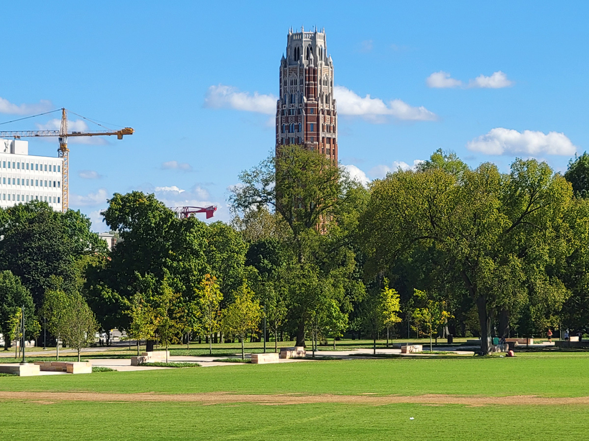 공원 잔디밭 너머로 조금 전에 대학교 정문 옆에서 봤던 것과 비슷한 외관의 빌딩이 높이 솟아있었다. 무슨 건물인지 궁금해서 찾아보니까 밴더빌트 대학교에서 오래된 아파트 스타일의 기숙사 건물을 철거하고, 그 자리에 최신 기숙사를 새로 만들면서 저 고딕양식 20층 건물인 West End Tower를 새로 건설한 것이었다.