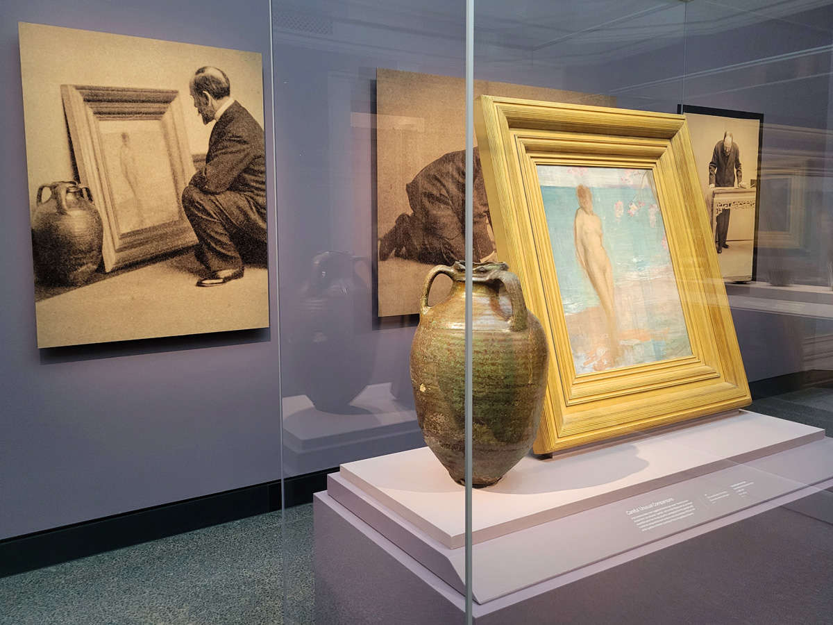 휘슬러의 Venus Rising from the Sea 그림과 16~17세기경 시리아에서 만들어진 단지(jar)를 나란히 놓고 바라보는 프리어의 흑백사진 앞에 실제 그 두 작품이 유리벽 안에 놓여있었다. 앞서 초상화 오른편의 "The Power to See Beauty" 제목의 안내판을 읽어보면, 지금 프리어가 다른 문화의 두 작품을 놓고 'cross-cultural interchange'를 통한 아름다움을 바라보는 것 같다... 여기 프리어갤러리를 시작으로 앞으로 많은 워싱턴DC의 미술관들을 새로 방문할 예정인데, 과연 나에게도 그가 말한 그런 "아름다움을 보는 힘"이 있을까?