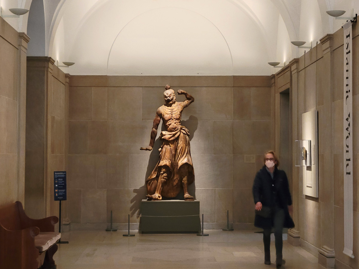 중정의 북쪽을 동서로 잇는 복도의 양쪽 끝에는 일본에서 가지고 온 나무로된 조각상이 한 명씩 세워져 있었다. 이제 오른편의 인도와 중동의 물품들을 구경한 후에 다시 나와서 왼편의 일본 전시실로 가면 된다.