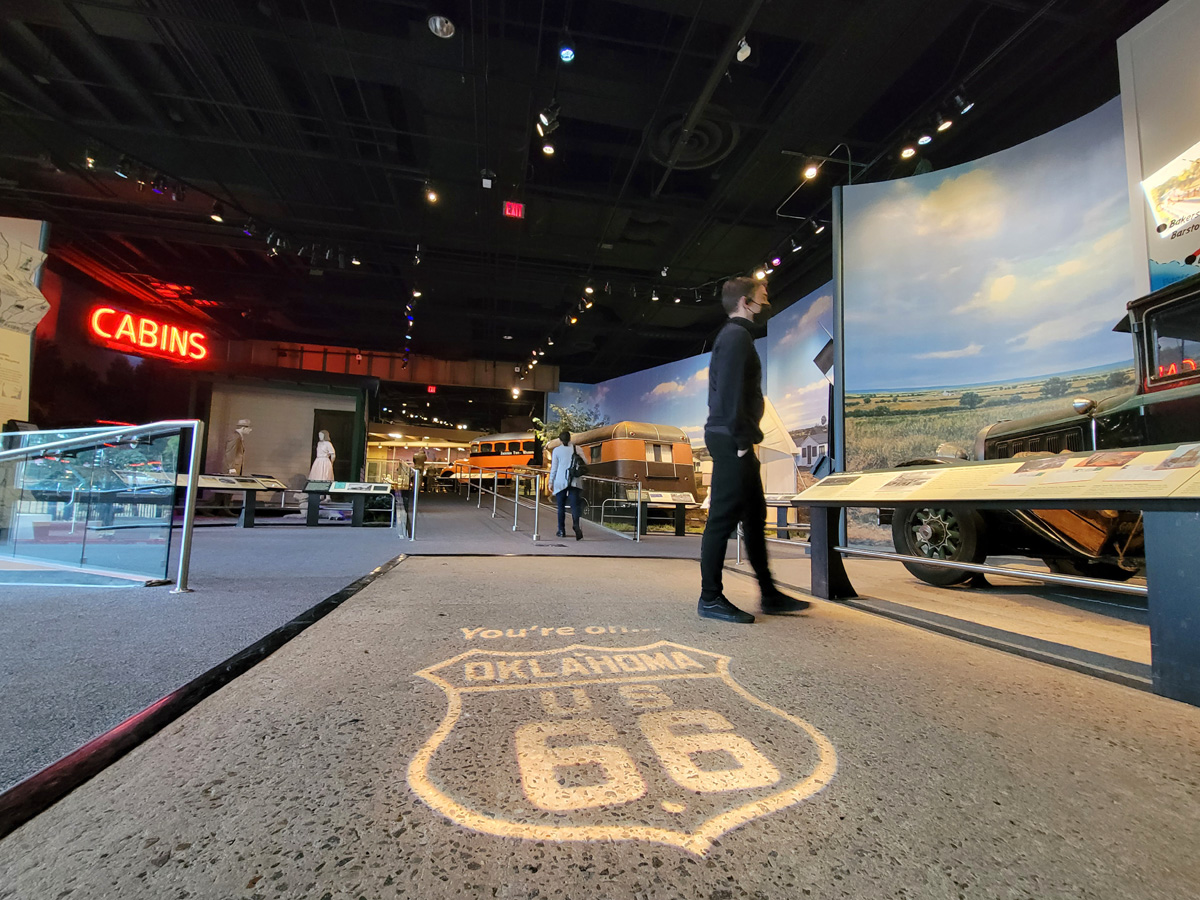 그리고 바닥에 조명으로 새겨진 그리운 루트66(Route 66) 사인과 함께 등장하는 자동차 문화의 역사들이다.