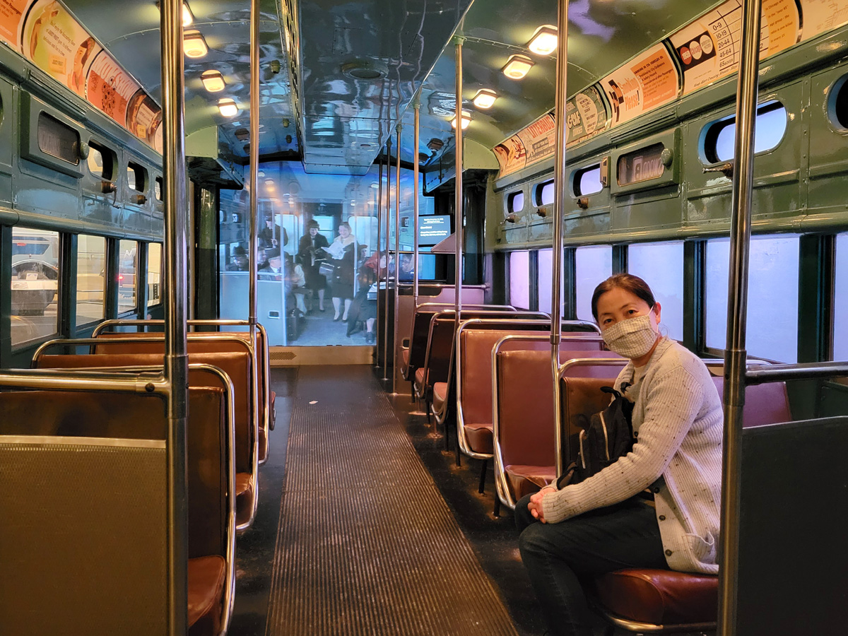 구경을 마치고 지하철을 타고 집으로 돌아가는 것은 아니고... 도시의 운송수단으로 지하철의 등장을 설명하면서 아예 객차를 하나 가져다 놓았는데, 뒤쪽 화면에 당시 사람들이 함께 타고있는 것 같이 보여주는 것은 물론, 지하를 달리는 것처럼 덜컹거리면서 창밖의 조명이 스쳐지나가는 디테일까지 놓치지 않았다.
