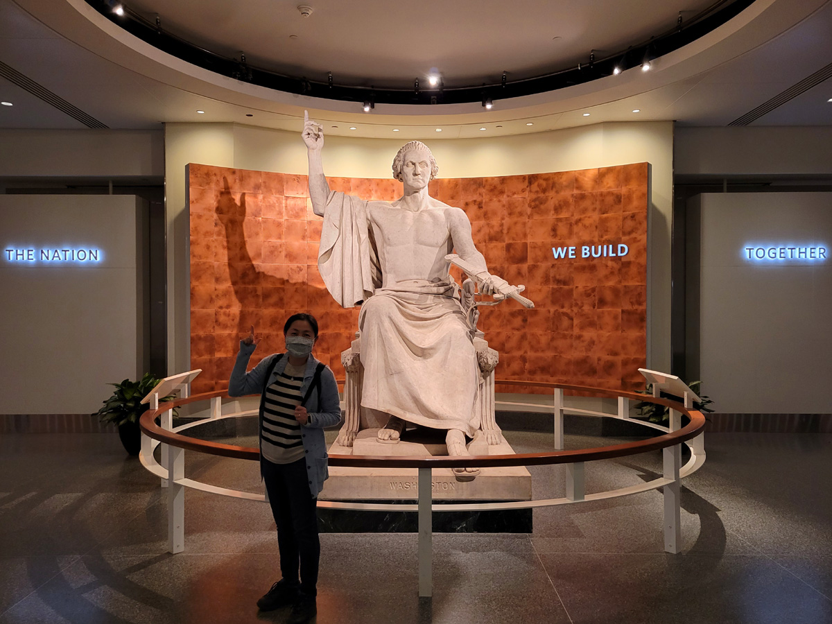 2층 서쪽 전시실들의 입구에는 로마의 신과 같은 복장으로 하늘을 향해 똥침을 찌르는 분이 계신데, 바로 미국의 초대 대통령인 조지워싱턴이다. George Washington Sculpture는 1840년에 만들어져서 처음에는 국회의사당 중앙홀에 설치되었다가 야외로 옮겨졌고, 1908년 이후로는 스미소니언 박물관 내에서 전시를 하고 있다.