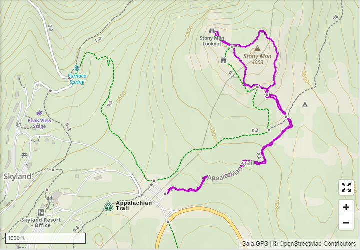 그렇게 애팔래치안 트레일을 따라서 0.4마일 정도만 걸은 후에 갈림길에서 스토니맨(Stony Man) 정상쪽으로 방향을 틀었다. 옛말에 시작이 반이라고 했으니 그러면 절반을 더해서 AT 전구간의 50.02%를 걸은 셈인가? ㅎㅎ