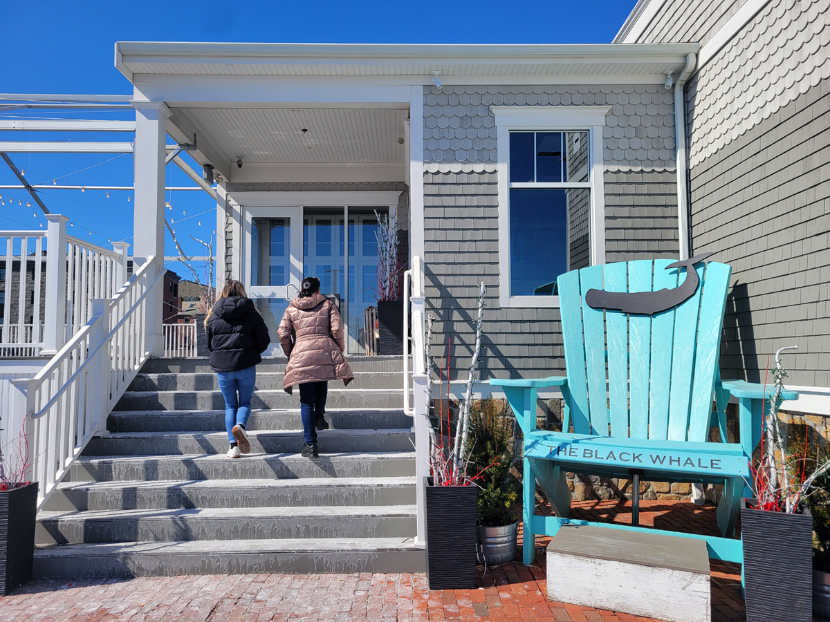 그나마 자연의 경치로 지정된 국립공원이라 할 수 있었던 케이프코드 국립해안(Cape Cod National Seashore) 구경을 마치고, 1시간 정도 차를 달려 도착한 곳은 아직 매사추세츠 주에 속하는 뉴베드포드(New Bedford)라는 항구도시였다. 일단 점심을 먹기 위해서 아내가 검색으로 찾은 '까만고래' 블랙웨일(Black Whale) 식당으로 들어가고 있다.
