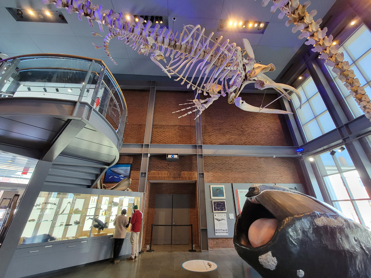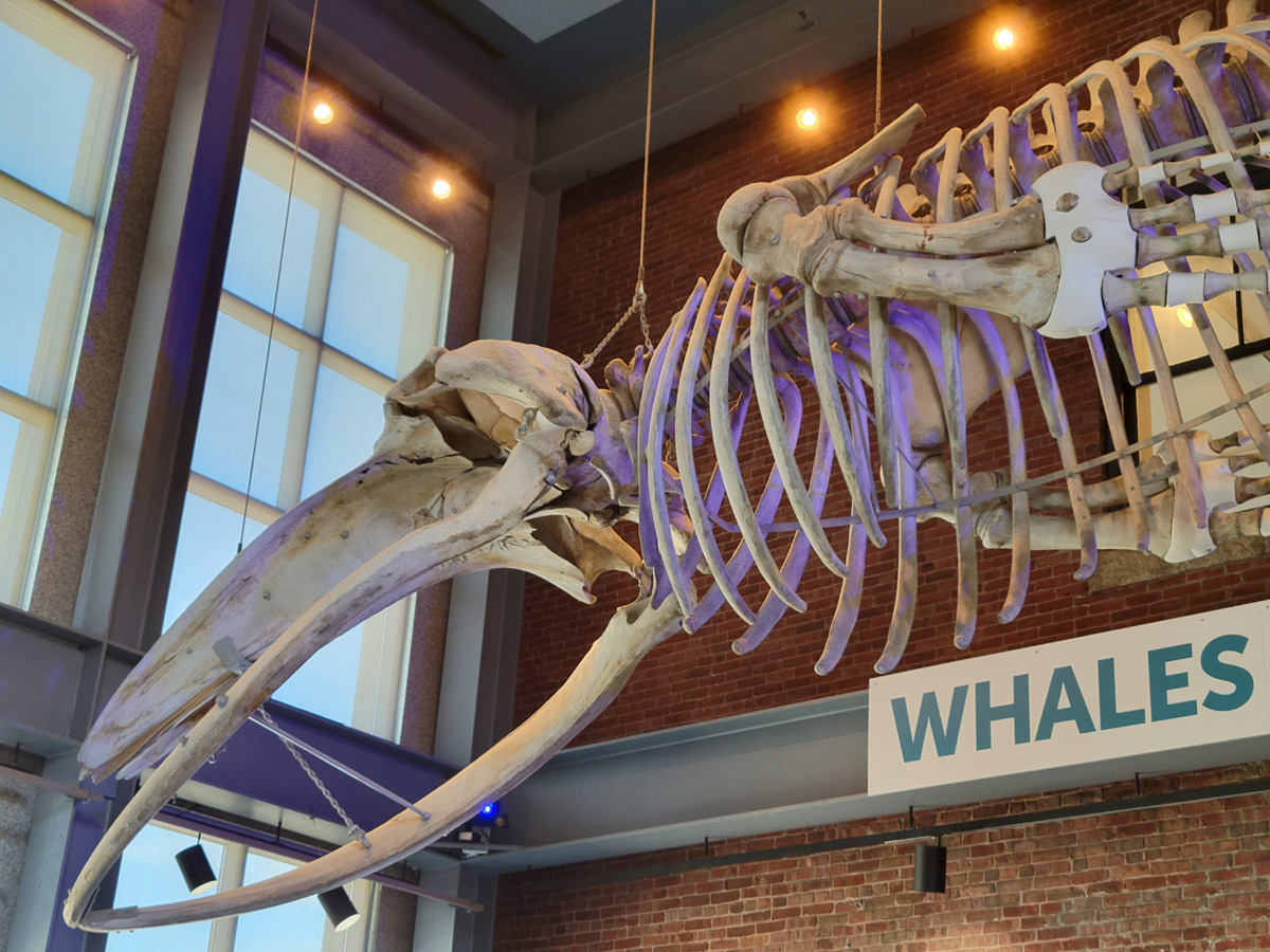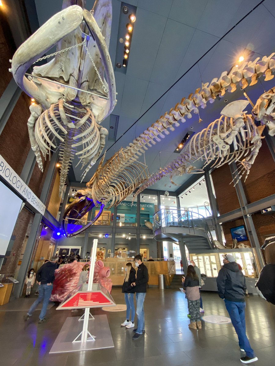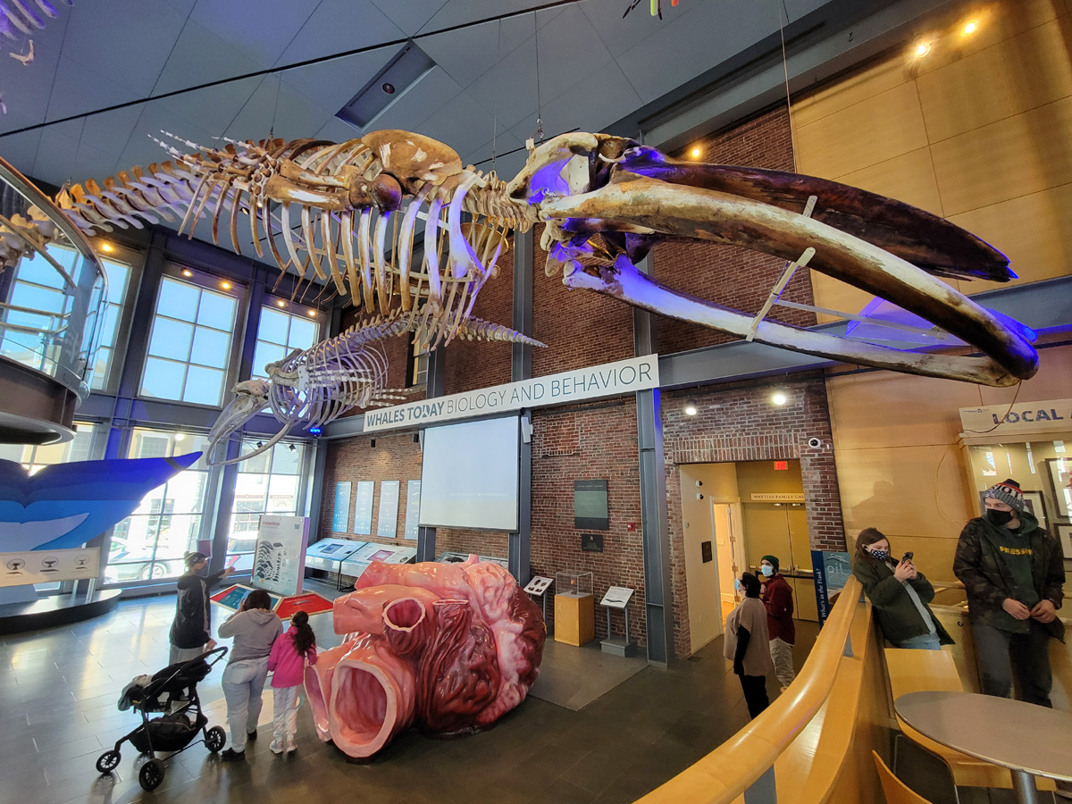 아주 예전에 "미국에서 꼭 가봐야할 '고요하고 놀라운' 아름다움이 있는 10곳"이라는 제목의 포스팅을 올린 적이 있는데, 그 중에 하나가 낸터컷 섬에 있는 고래뼈가 천정에 매달린 포경 박물관이었다. 비록 그 섬은 비싼 뱃삯 때문에 이번에 못 갔지만, 이렇게 고래뼈는 여기서 원 없이 볼 수가 있었다. 바닥에 놓인 핑크색은 고래의 심장 모형이라고 하는데 아이들이 통과하며 놀 수 있도록 만들어져 있다.