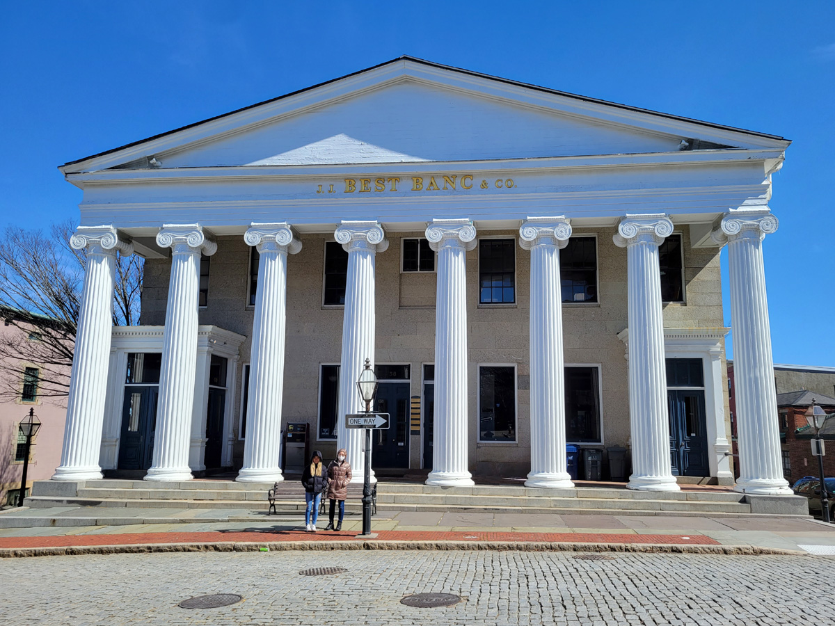 비지터센터를 나와서 Water St와 만나는 정면에는 지금도 은행으로 사용되는 1831년에 지어진 The Double Bank 건물이 신전처럼 우뚝 서있다. 포경업의 전성기이던 19세기에는 뉴베드포드(New Bedford)가 세계 최대의 포경항구였고, 거주민들의 평균소득으로 따져본다면 한 때 '전세계에서 가장 부유한 도시(the wealthiest city in the world per capita)'였을거라고 한다.