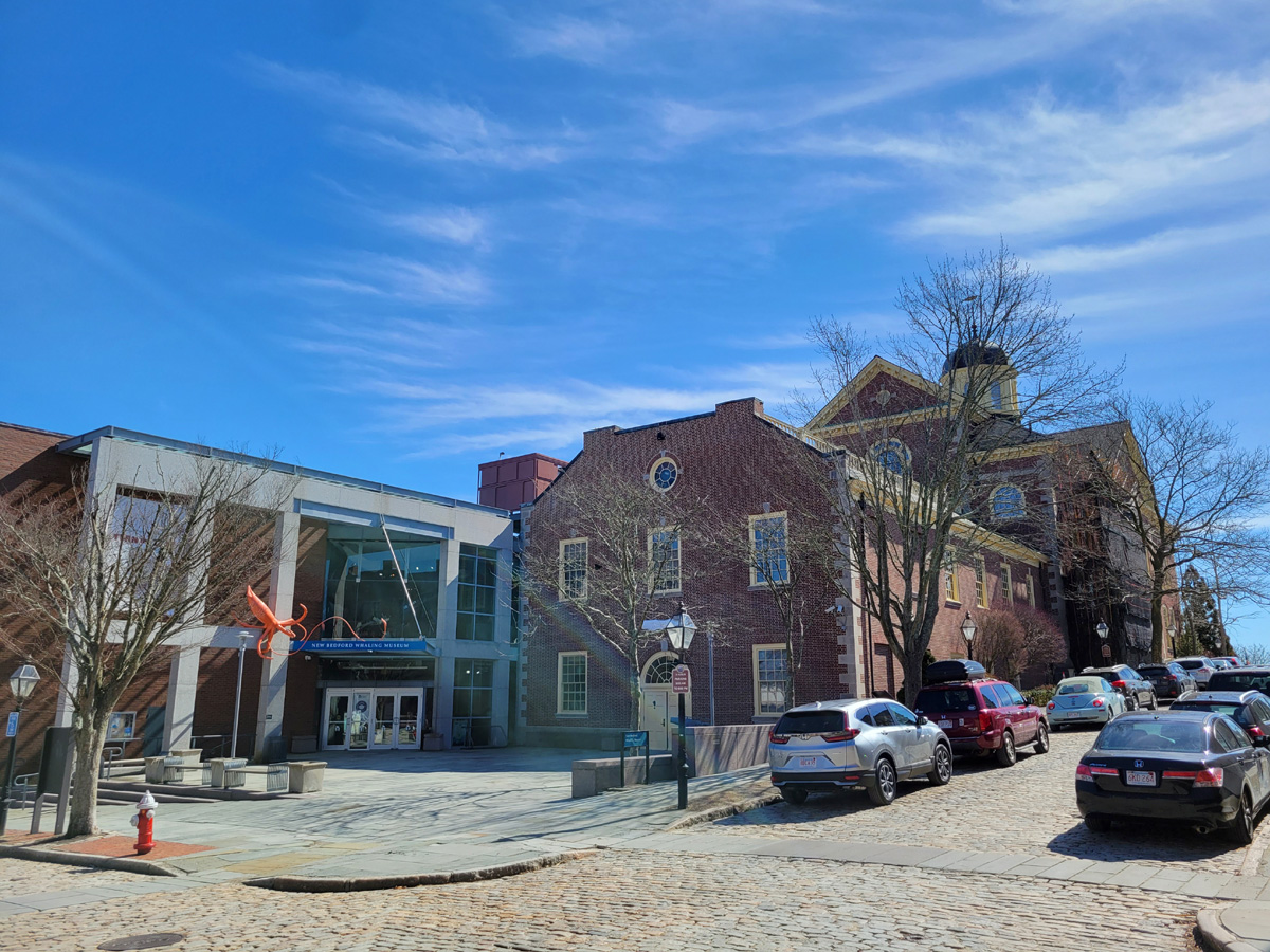 점심을 잘 먹고 잠깐 차를 몰고 뉴베드포드(New Bedford)의 구시가지로 왔는데, 도로가 어느 유럽의 뒷골목처럼 돌멩이를 박아서 만들어져 있었다. 왼편에 커다란 '대왕 오징어'가 보이는 곳은 오징어 박물관이 아니라, 그걸 먹고 사는 고래를 잡는 것에 관한 뉴베드포드 포경 박물관(New Bedford Whaling Museum)이다.