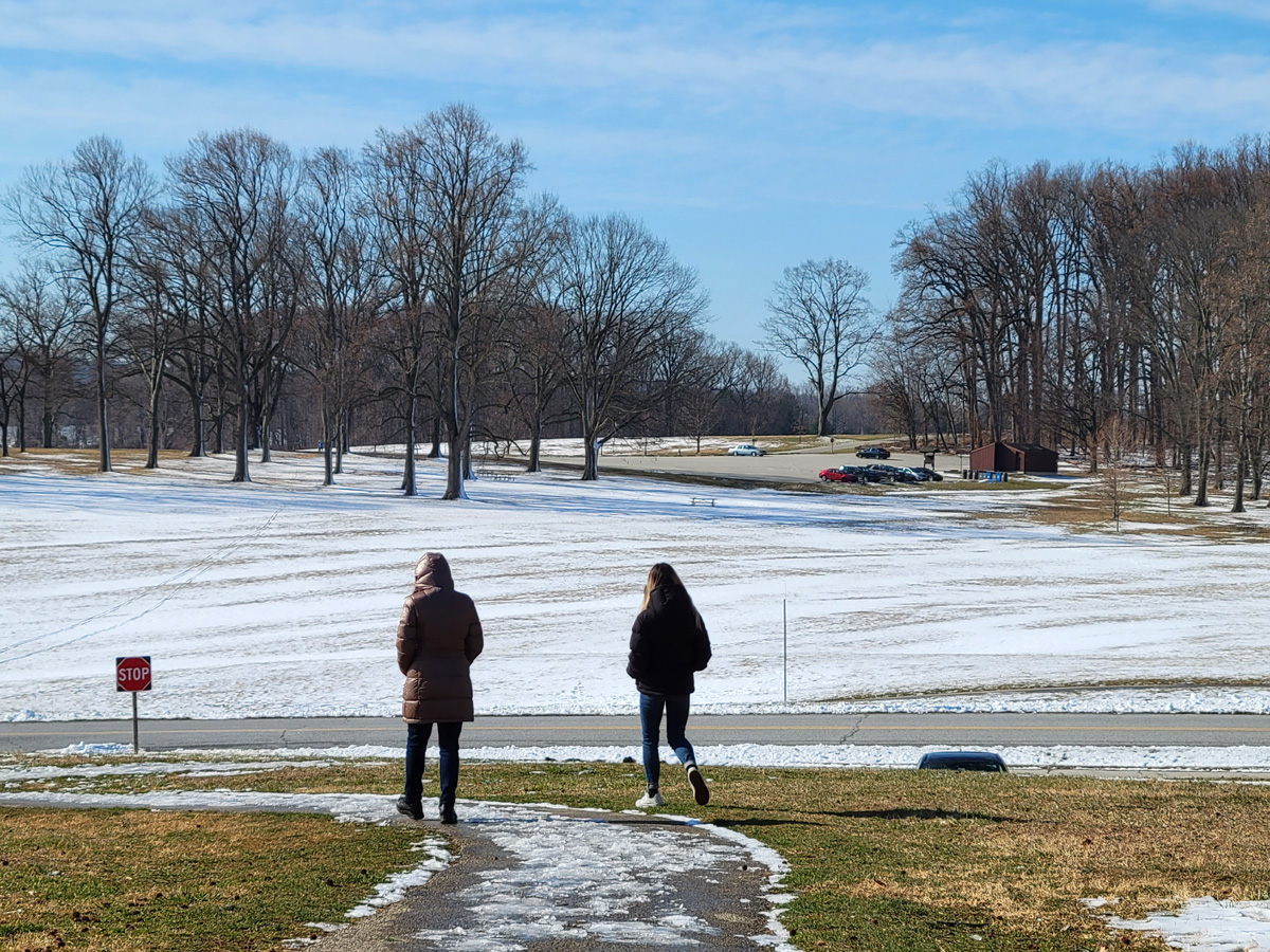 첫번째로 차를 세우고 이 역사공원에서 가장 유명한 볼거리인 내셔널메모리얼아치(National Memorial Arch)를 보러 눈 내린 잔디밭을 걸어가는 중이다. "야~ 파리 개선문이다!"