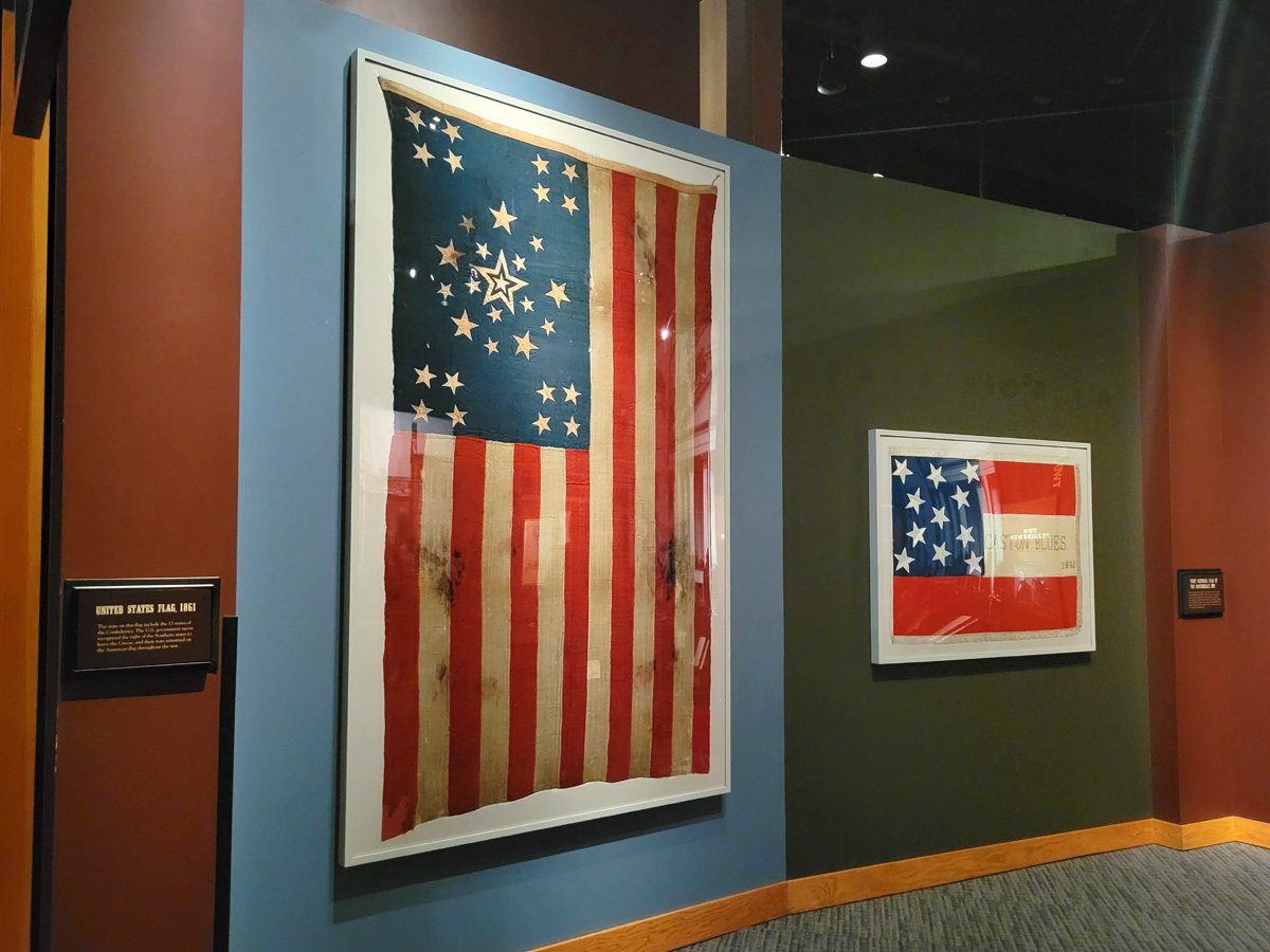 왼편이 1861년의 미연방의 국기라고 하는데, 가운데 겹친 것을 하나로 본다면 32개 별의 배치가 정말 특이하다. 오른편에 연방을 탈퇴한 11개의 주를 상징하는 11개의 별이 표시된 것이 남부동맹에서 처음 채용한 국기라고 한다.