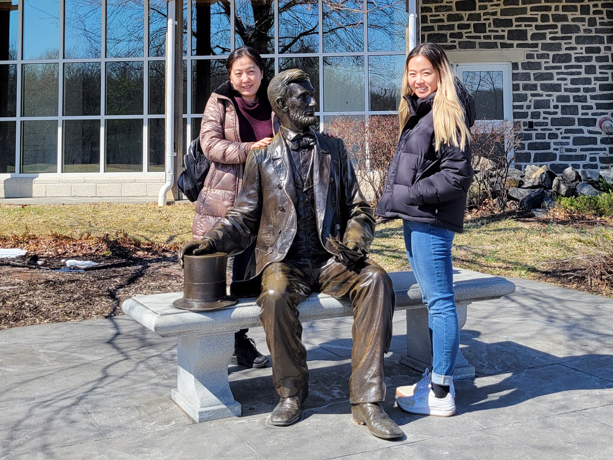 건물 입구의 벤치에 앉아있는 아브라함 링컨(Abraham Lincoln)... 왠지 자신의 이름과 비슷하게 "아브라카다브라!"라고 외치면서 오른손에 쥐고 있는 모자를 들어올리면, 안에서 하얀 토끼가 나올 것 같았다~