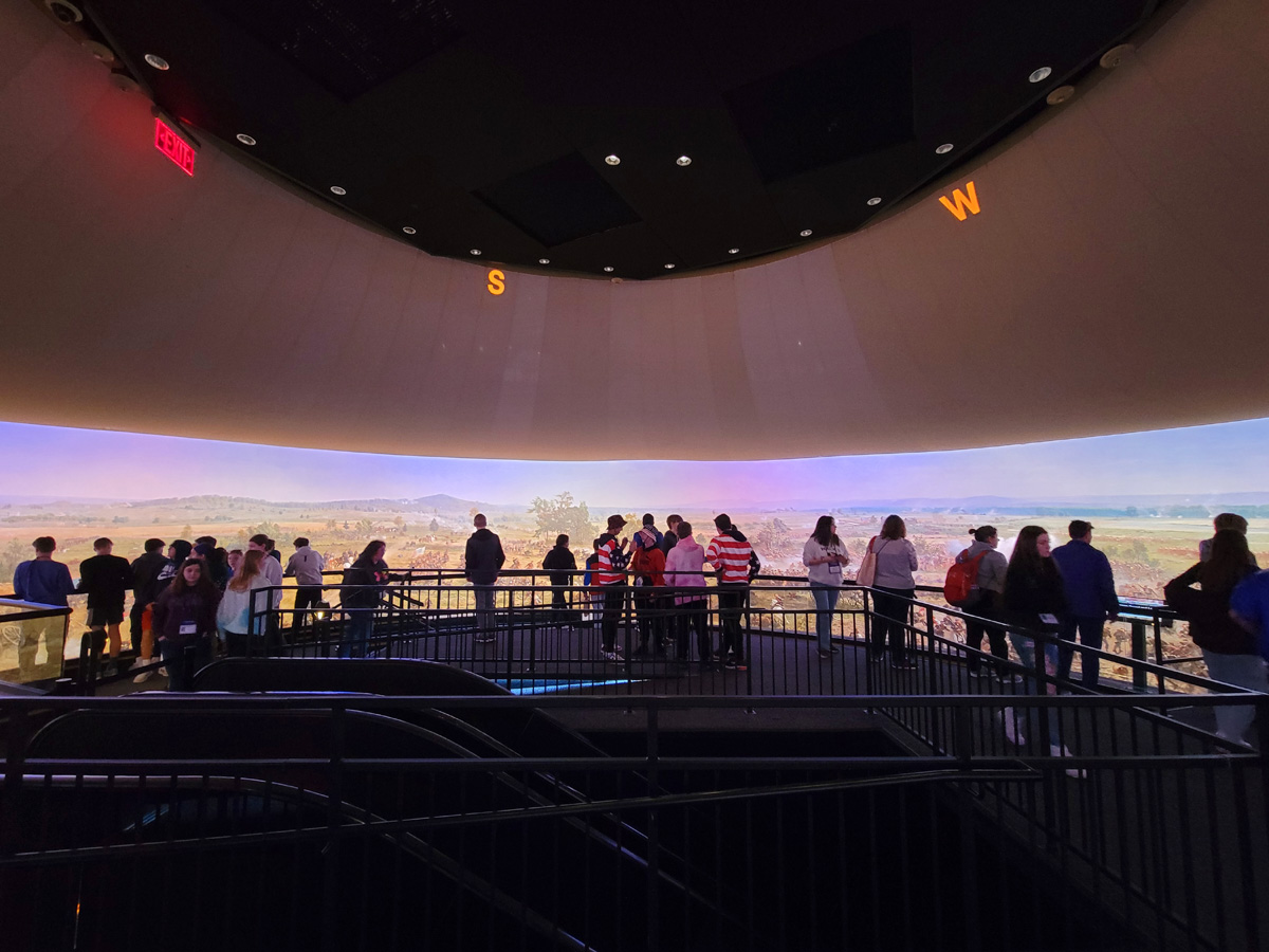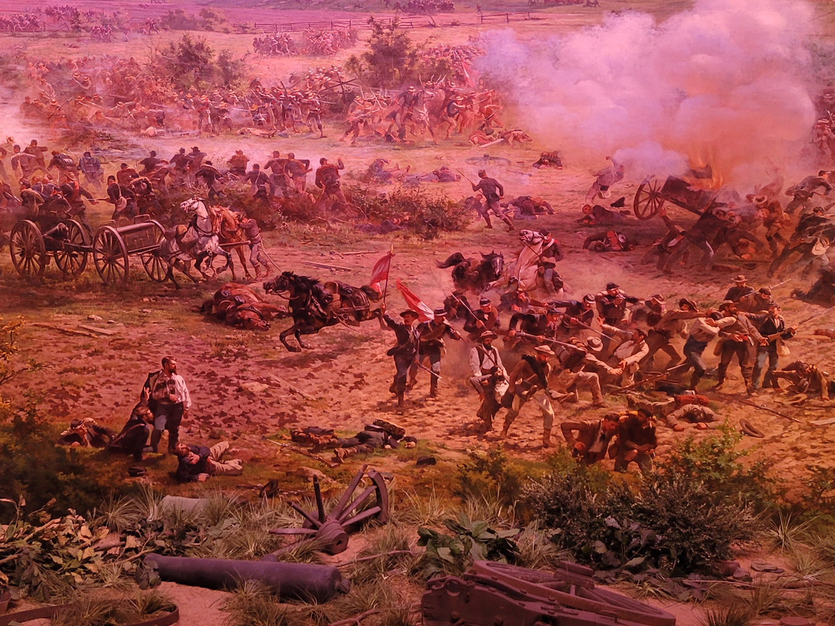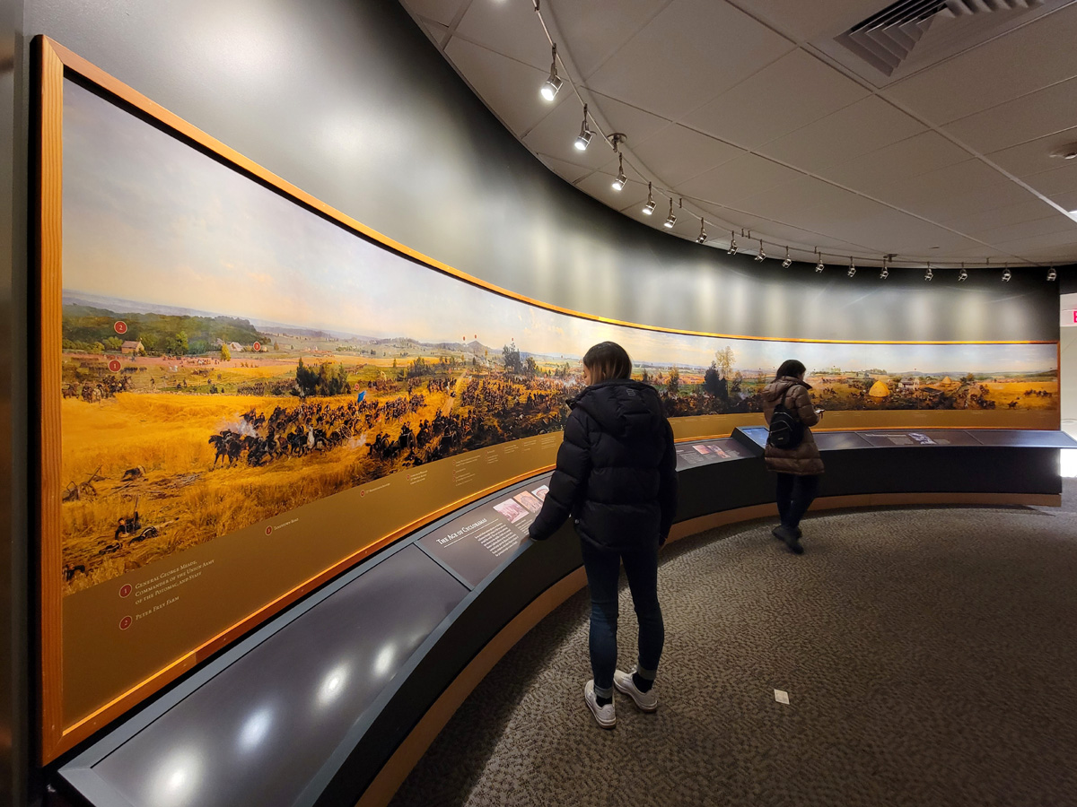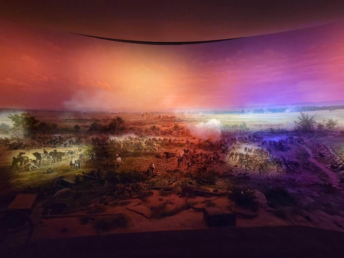 3일간의 전투 마지막 날인 1863년 7월 3일의 게티스버그 모습을 360도로 그린 "Battle of Gettysburg" 사이클로라마(Cyclorama) 그림으로, 높이 13 m의 패널을 이어붙여서 원형으로 만들어진 전체 둘레의 길이는 무려 115 m나 되는데, 프랑스의 사이클로라마 전문 화가였던 Paul Philippoteaux를 초빙해서 1884년에 완성했던 초대형 유화이다. 극장의 관객들이 다 올라오고 나면 조명과 효과음을 이용해서 전투상황에 대한 설명을 5분 정도 진행했는데, 비록 그림이 움직이지는 않지만 마치 그 전투의 한 가운데에 서있는 듯한 감동을 느낄 수 있었다.