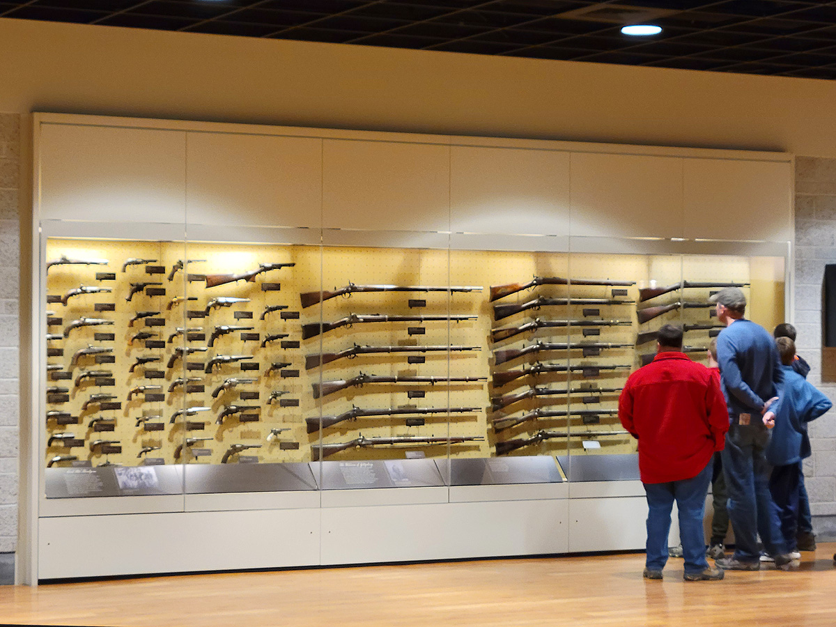 극장 입장을 기다리면서 주변을 둘러보니, 한 쪽 벽에 남북전쟁 당시에 사용된 총기류들이 가득 전시되어 있었다. 오전에 들렀던 독립전쟁 유적지에는 칼과 창도 함께 전시되어 있었지만, 백 년 가까운 시간이 흐른 후에는 거의 총기로 승부를 본 모양이었다.