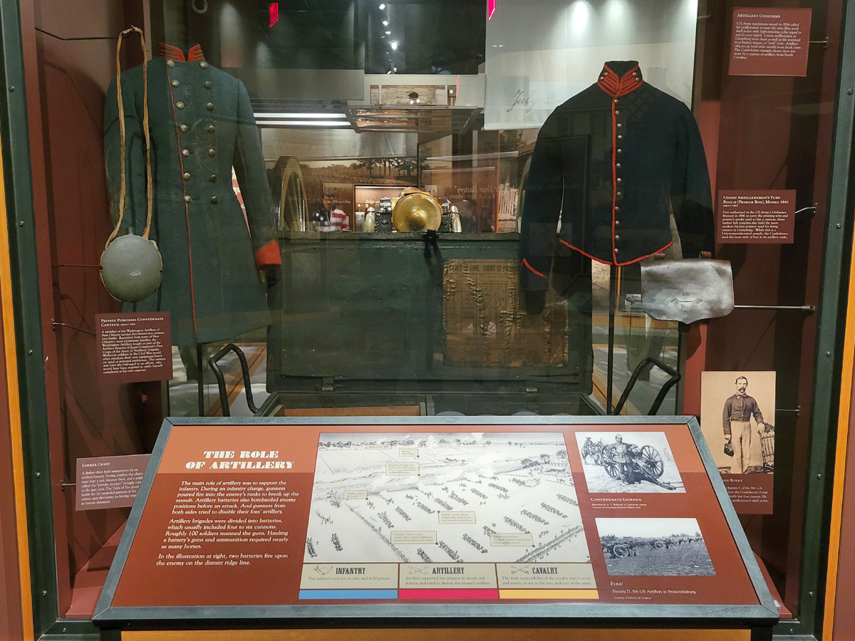남과 북의 포병의 옷을 비교 전시해놓은 모습으로, 남북전쟁은 산업화 이후에 대량 생산된 무기와 모든 물자를 동원한 최초의 총력전이자 현대전이었단다. 또한 지금까지 미국 역사상 가장 참혹하고 인명피해가 많았던 전쟁으로 1865년까지 약 4년 동안에 군인만 62만명이나 죽었다고 한다.