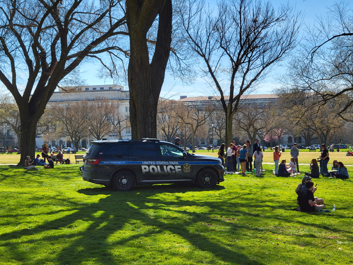 방향을 돌려서 어디를 갈까 방황하고 있는데, 경찰차 한 대도 잔디밭에 올라가서 그늘에서 쉬고 있는 것이 보였다.^^