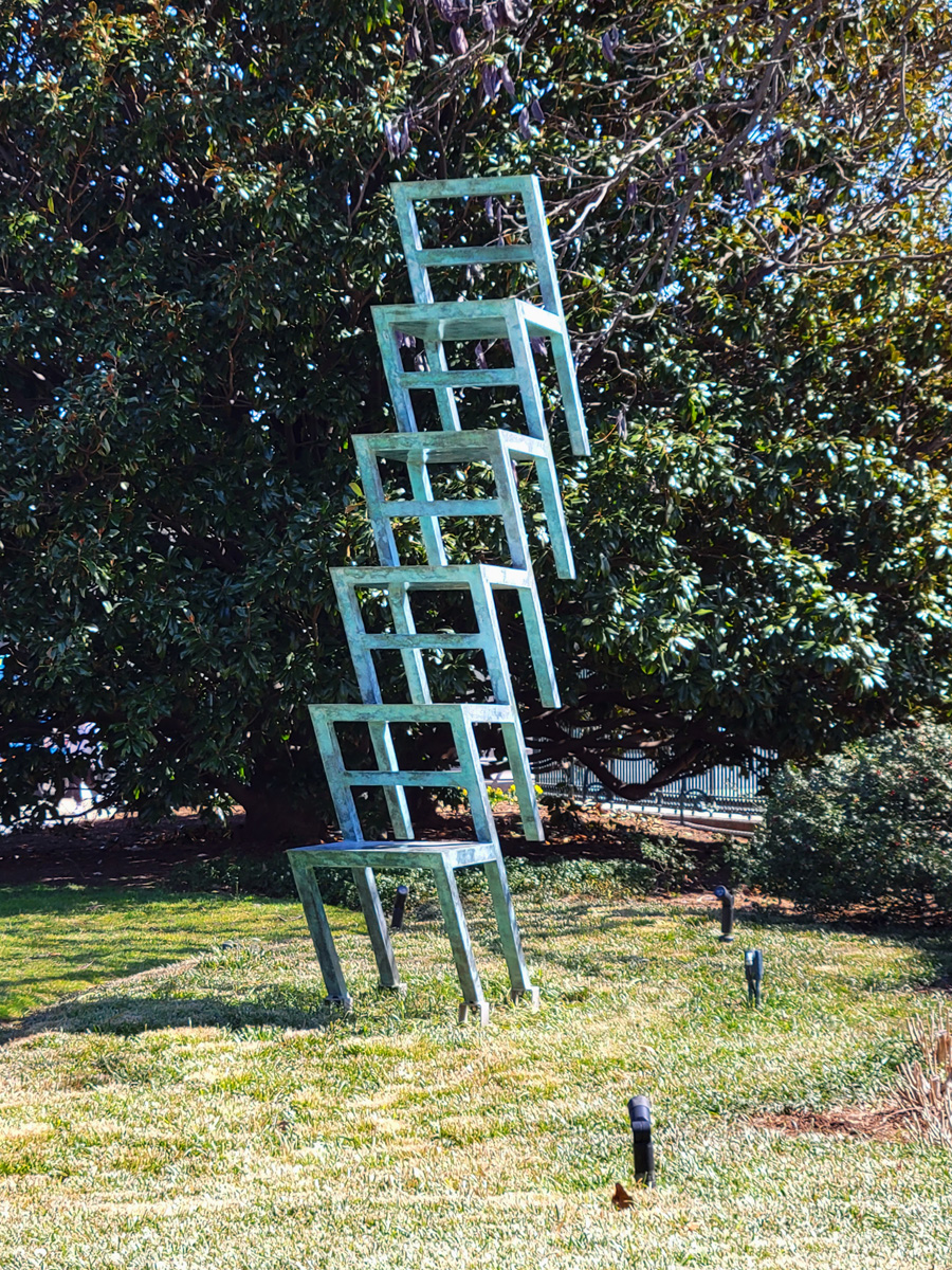 사진을 수직을 맞춰서 잘 찍은 것인지 헷갈리는 삐딱하게 세워진 의자들... 서커스에서 진짜 의자를 저런식으로 높이 쌓은 후에, 사람이 저 위로 올라가서 물구나무를 서는 그런 장면이 떠오른다.