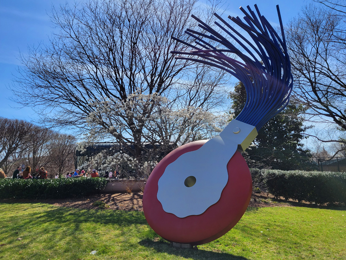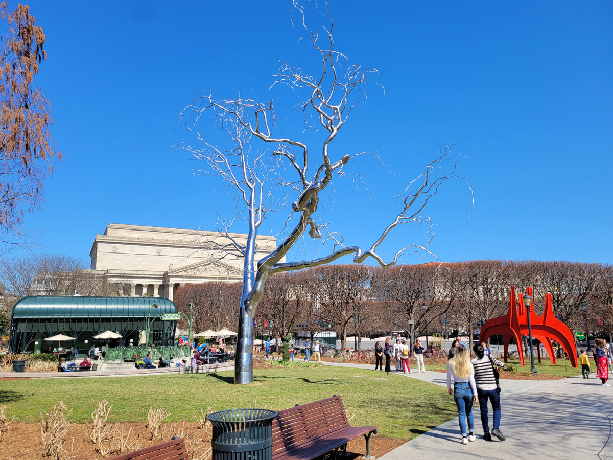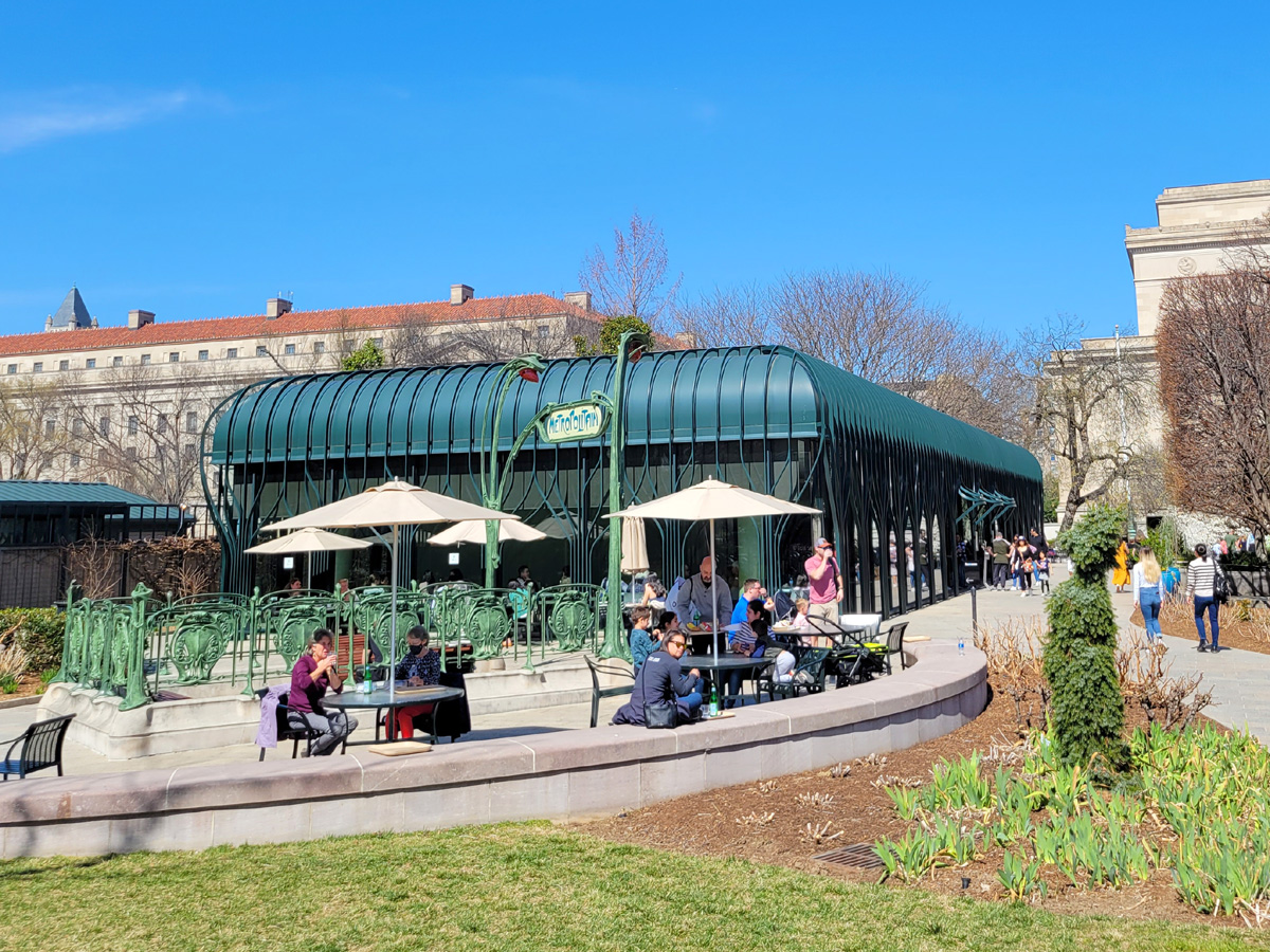 반년 전에 1차 대륙횡단을 마지고 지하철로 DC에 놀러와서도 저기 카페에서 아이스커피를 한 잔 사서 마신 것을 이미 보여드렸었지만, 이 조각정원은 저 Pavilion Café를 찾아서 오시는 분들이 많다. 참, 카페 앞쪽으로 휘어진 가로등(?) 사이에 'Métropolitain'이라 적혀있고 고풍스런 난간들이 만들어져 있는 것도 별도의 미술작품이다.