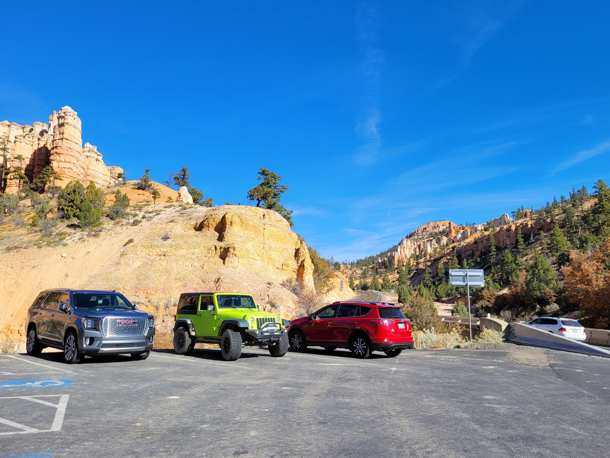 국립공원 정문을 일단 나와서 12번 도로를 만나 동쪽으로 조금 달리면, 산 아래로 내려가다가 조그만 개울을 건너는 다리를 지나자마자 잘 만들어진 주차장 하나가 나온다.