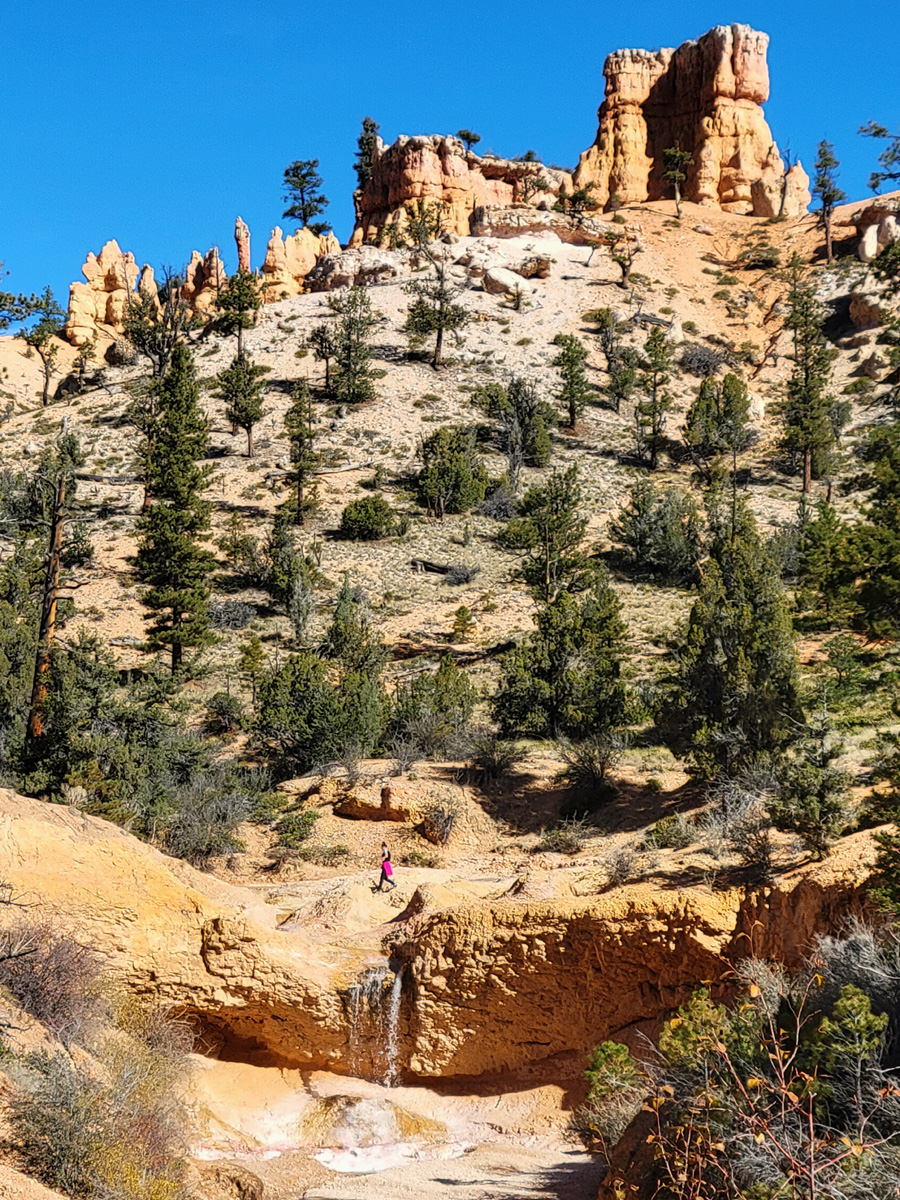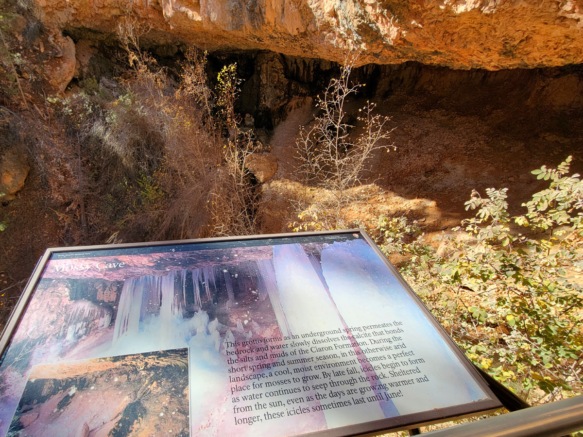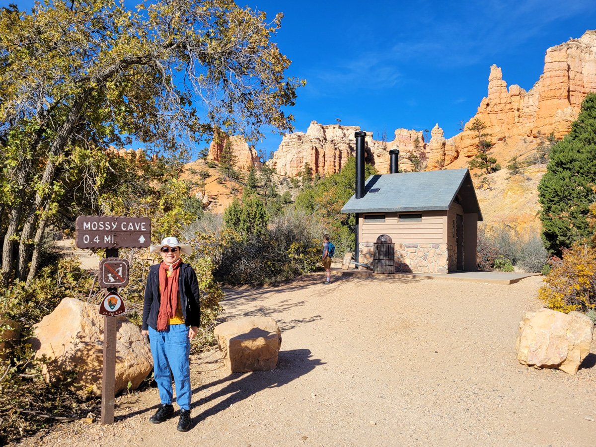 그 주차장에서 한동안은 마지막이 될 브라이스캐년 관광의 대미를 장식할 모시케이브(Mossy Cave) 트레일이 시작된다. (구글맵으로 위치를 보시려면 클릭) 국립공원 정문 밖으로는 나왔지만, 이 지역은 다시 공식적으로 국립공원에 포함이 되는 곳이다.