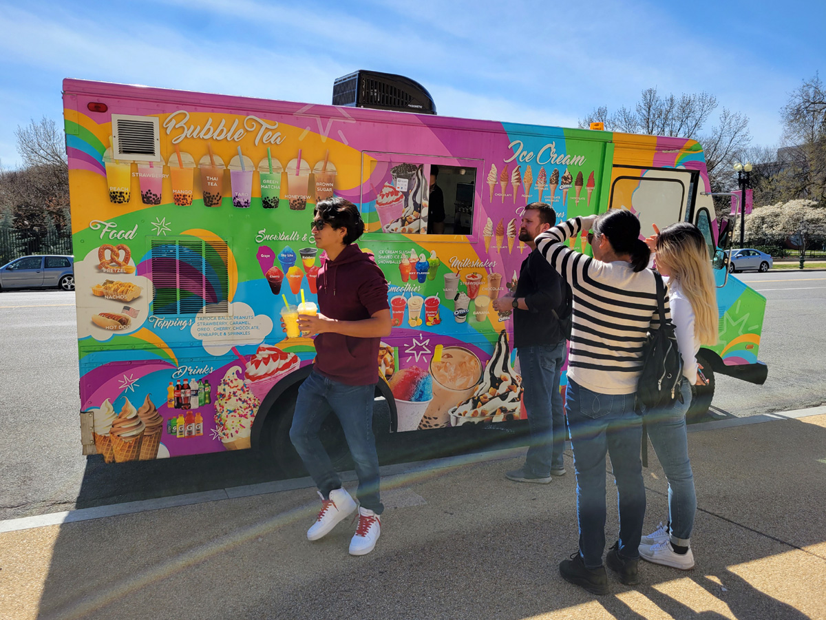 일단 3월 이른 봄의 햇살이 너무 뜨거웠기 때문에, 길가 푸드트럭에서 파는 버블티 한 잔 사서 마시기로 했다. 모녀가 무슨 맛을 먹을까 열심히 의논하는 중...