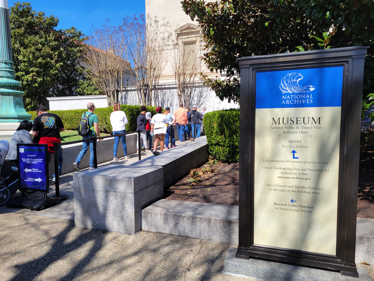 미국의 수도인 워싱턴DC에는 처음부터 전시를 목적으로 지어진 박물관과 미술관들도 많지만, 다양한 관공서들이 고유한 업무의 목적으로 건설되었다가 그 일과 관련된 소장품들을 건물 일부에 전시관을 만들어 공개하는 장소도 많이 있다. 그러한 곳들 중에서 가장 대표적이고 또 내셔널몰에서도 가까워 방문하기에 좋은 곳이 바로 미국의 중요한 문서와 기록들을 수집 관리하는 기구인 NARA(National Archives and Records Administration)에서 운영하는 국립 문서보관소 박물관(National Archives Museum)이다.