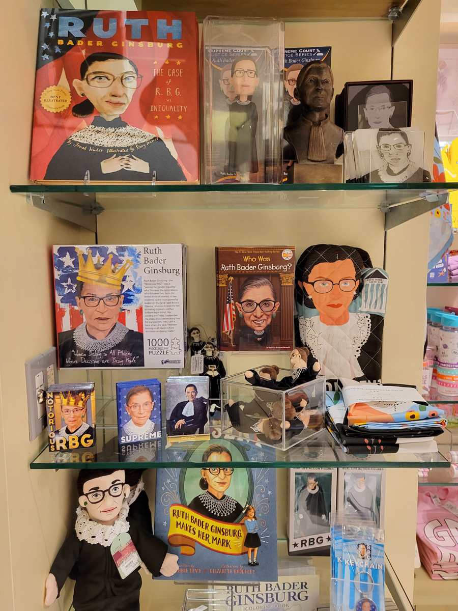 지난 번 국립 초상화 미술관 포스팅에서도 다른 여성 대법관들과 함께 있는 그림을 보여드렸던 "Notorious RBG"의 기념품 코너가 따로 만들어져 있었다. 미국 대법원 건물도 한 번 구경하러 가봐야 되는데, 지금은 낙태에 관한 판결문이 사전에 유출되어 이와 관련한 시위대들 때문에 접근이 불가능하도록 폐쇄된 상태이다.