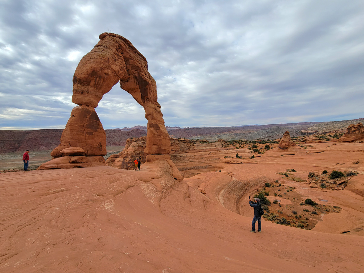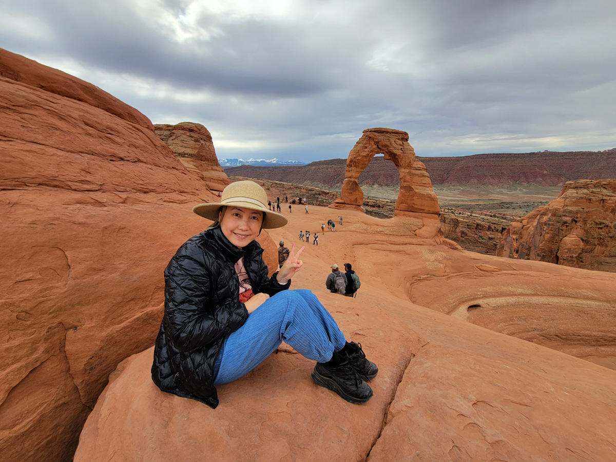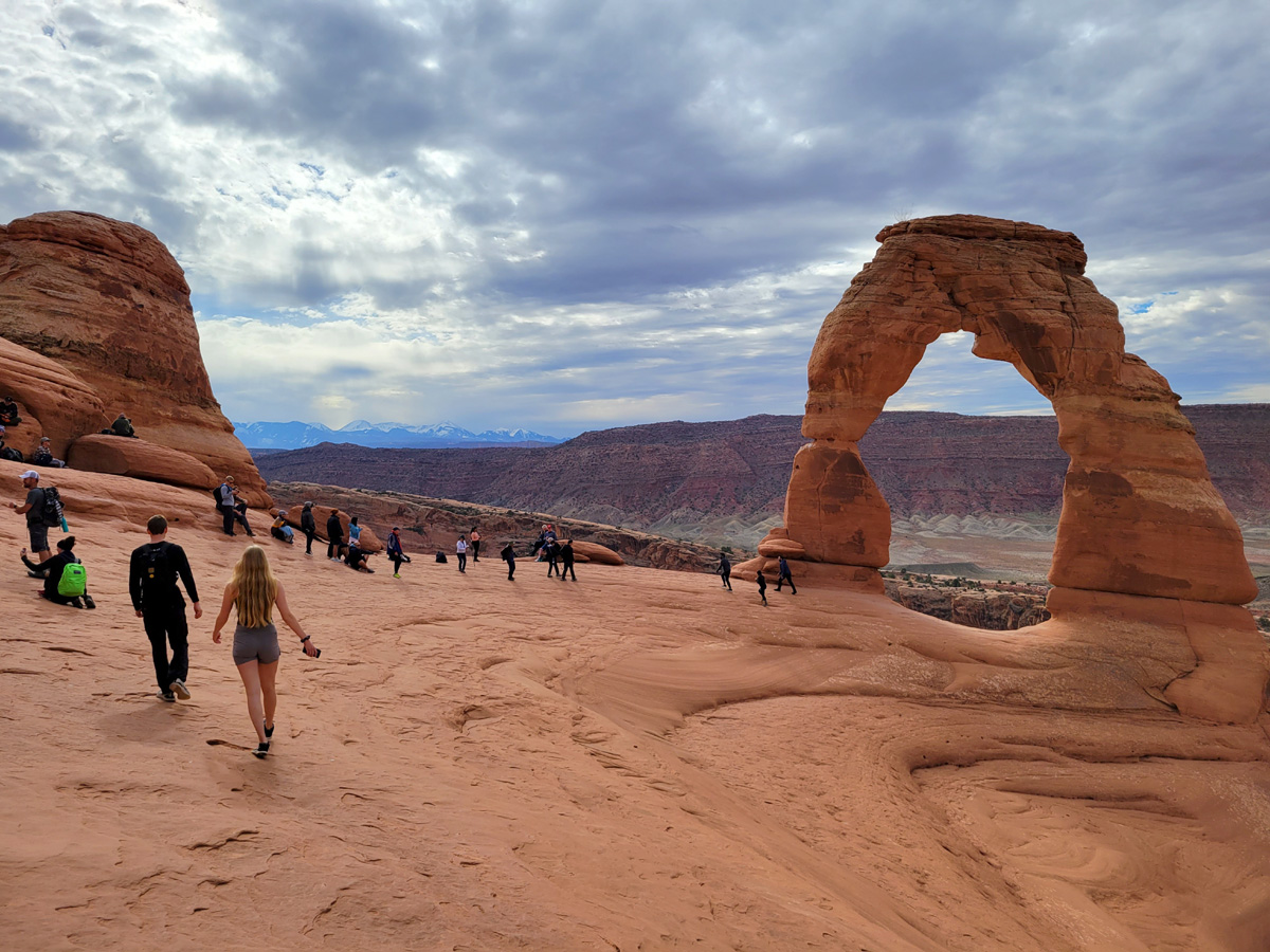 작별하고 돌아서는데 우리가 기다릴 때보다 줄이 더 길어진 것을 보니 괜히 즐거운...^^ 델리키트 아치를 보며 아침도 잘 먹었겠다~ 이제 주차장으로 돌아가서 12년 전에는 그냥 잠깐 멀리서 보기만 했던 다른 커다란 아치들이 있는 곳으로 가서 그 아래까지 또 트레일을 하기로 했다.