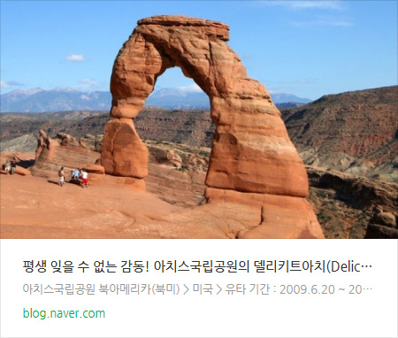 유타 주의 자동차 번호판에도 그려져 있는 델리키트아치와 우리 부부가 12년만에 감동적인 재회를 하는 순간의 동영상을 클릭해서 유튜브로 보실 수 있다. 왜 우는지는 모르겠지만 그 때 시끄러웠던 아기의 울음소리도 추억으로 같이 기록되었다.^^