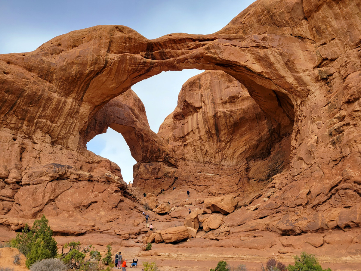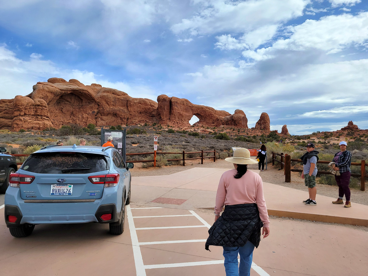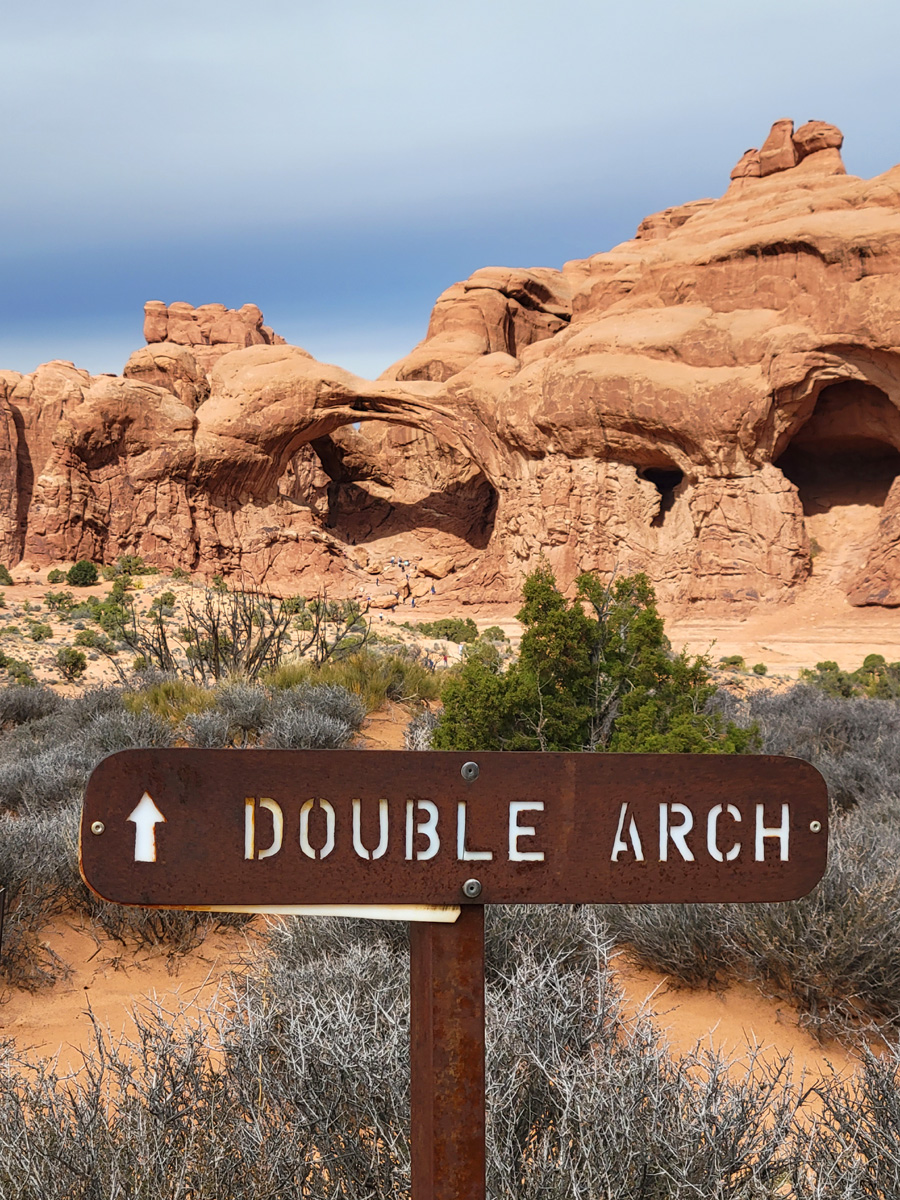 그 막다른 주차장의 북쪽에 이제 찾아가는 더블아치(Double Arch)가 있다. 여기 멀리서는 사진 정면 가운데에 하나의 아치만 가로지르는 것 같지만,