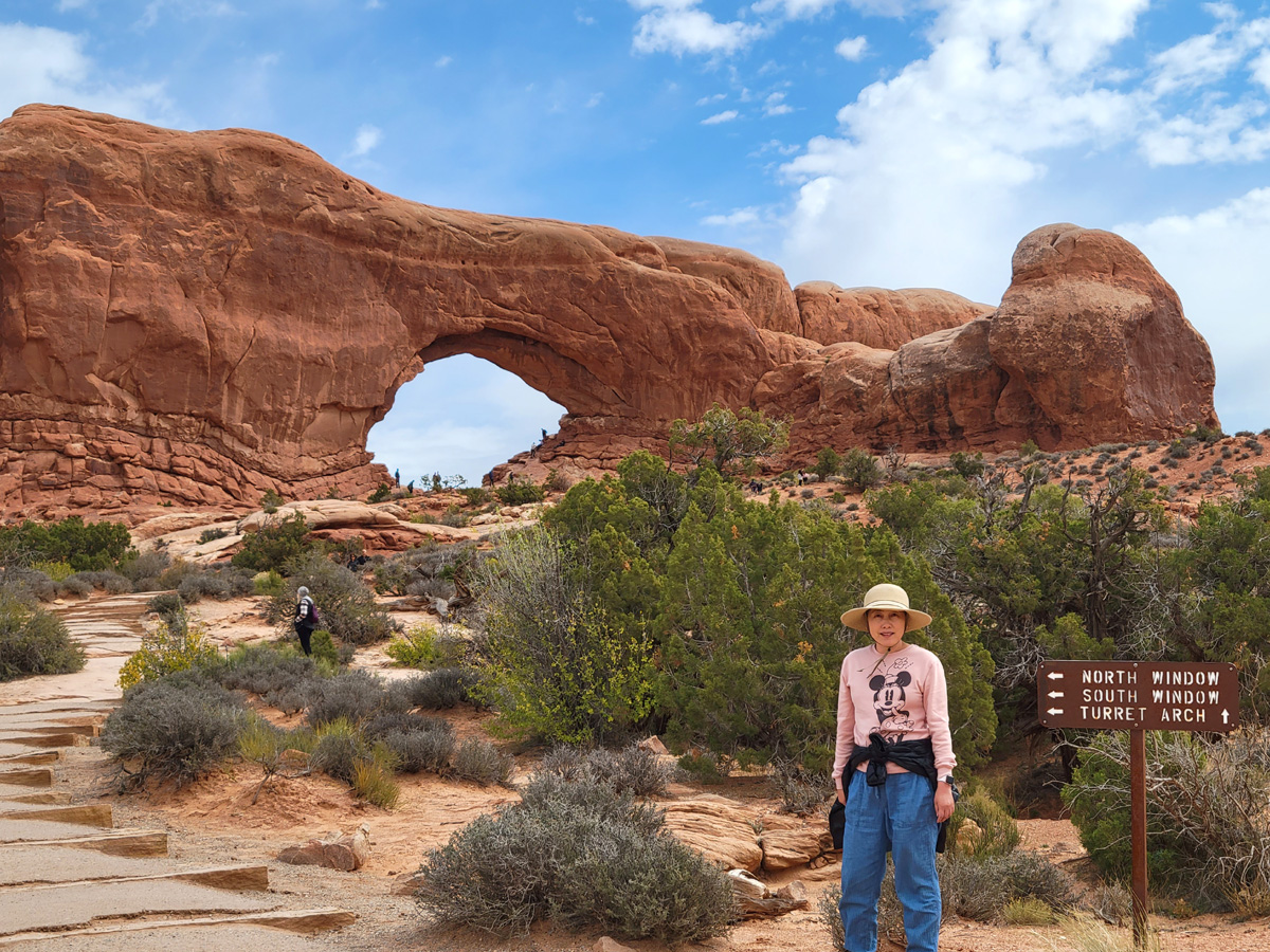 이 쪽에는 저 석벽에 구멍이 뚫어져 있는 것이 마치 창문같다고 해서 윈도우(window)라 부르는 아치가 두 개 있고, 오른쪽에 동떨어져 있는 바위산에도 커다란 아치가 또 하나 있다. 그래서 루프트레일로 모두 돌아볼 수도 있지만, 우리는 가장 가까운 사진의 노스윈도우(North Window) 아래까지만 걸어 가보기로 했다.