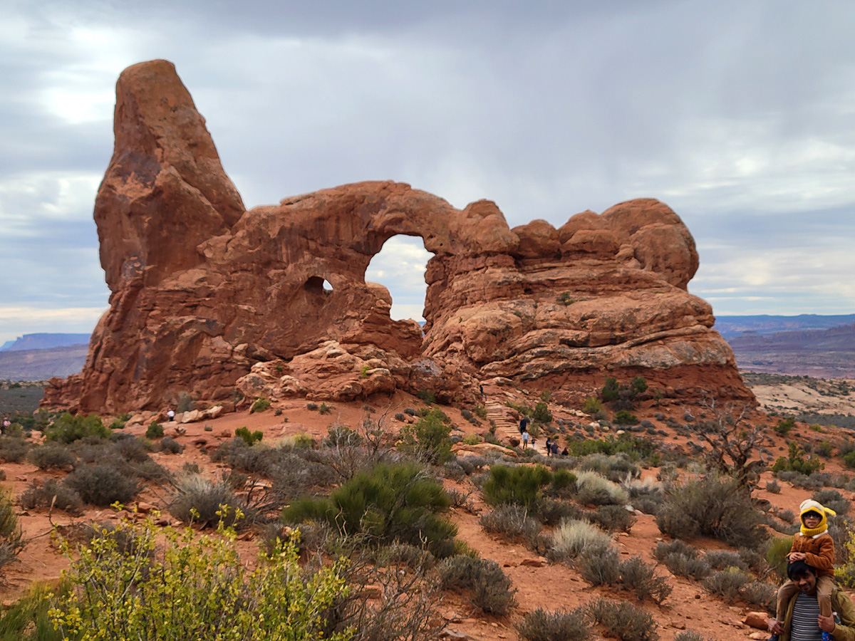 사우스윈도우(South Window)는 석벽을 따라 모퉁이를 돌아서 남쪽으로 걸어가면 나오고, 또 저 하늘을 향해 대포를 발사하는 것 같은 '포탑' 터렛아치(Turret Arch)에 가면 두 개의 창문이 나란히 보인다고는 하지만... 전편을 기억하실지 모르겠는데, 우리 부부는 에너지바와 마운틴믹스만 조금 먹고 오전 4시간째 트레일을 하고있었던 관계로, 그만 안녕하고 차로 돌아가서 제대로 된 식사를 하기 위해 모압(Moab) 시내로 향했다.