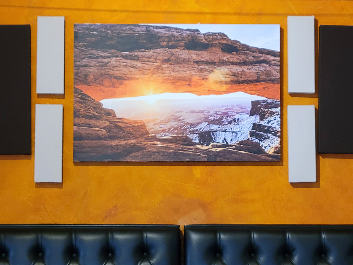 우리 자리의 맞은편 벽에는 오늘 아침에 보고 싶었던 일출사진이 떡하니 걸려 있었다. 계산을 하고 나서 이제 저 아치를 보러 다시 왔던 길로 돌아갈거라고 하니까, 아내가 아치스 국립공원에서 그렇게 많이 봐놓고는 무슨 아치를 또 보러 가냐고 그런다~^^ "저 아치는 다른 국립공원에 있습니다. 원래 미서부 이별여행으로 아치스(Arches)만 들릴 계획이었는데, 사모님께서 자이언, 브라이스 다 지나가보자고 하셨잖아요? 그래서 지금까지 유타 주에서 4개의 국립공원을 방문했으니, 마지막 5번째 국립공원에게도 가서 작별인사를 해야지요."