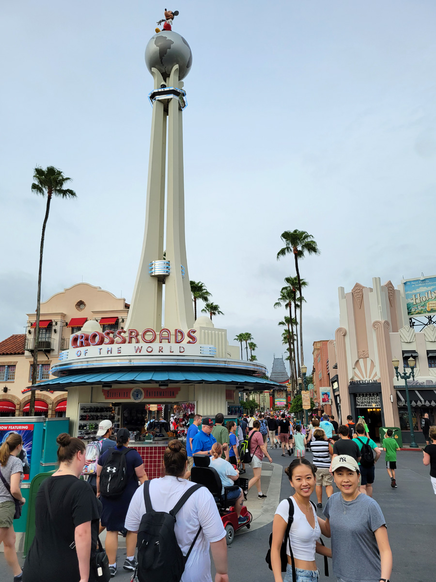 공원으로 들어오면 미키마우스가 지구본 위에 올라가있는 탑에 'Crossroads of the World'라 씌여있어서, 모녀의 사진을 찍고나서 "세계의 교차로는 뉴욕 타임스퀘어(Times Square) 아니야?"라고 말하려는데... 모든 사람들이 달리기 시작해서, 우리도 그냥 뛰었다!