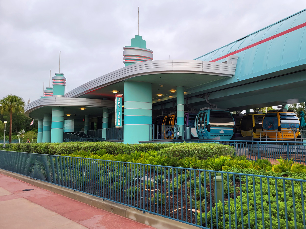 정문 앞에는 2019년에 개통한 디즈니월드의 곤돌라인 스카이워커(Skywalker)... 아니고, 스카이라이너(Skyliner)의 정류소가 있는데, 여기와 전날 방문했던 엡콧(Epcot), 그리고 주변에 있는 3개의 디즈니 리조트를 무료로 연결한단다. "공짜인데 한 번 타볼걸~"