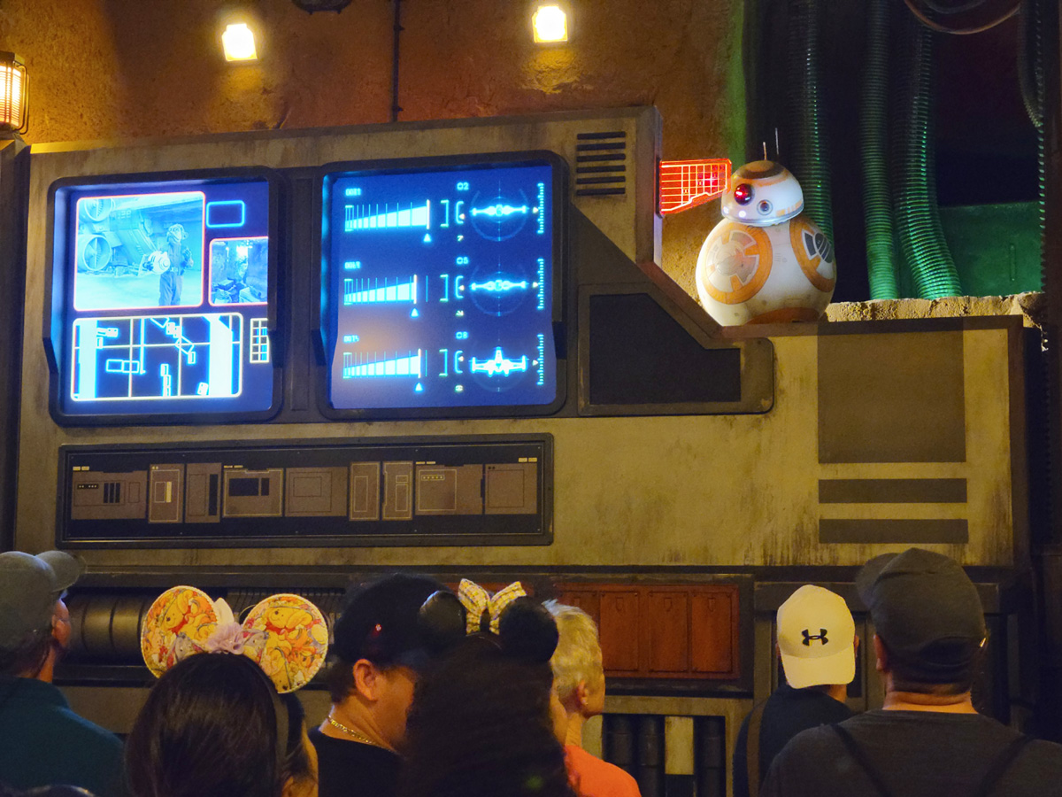 BB-8이 등장하는 대기실에 들어오면, 지금까지 디즈니가 만든 놀이기구들 중에서 가장 복잡하고 큰 규모의 스토리가 시작되는데... 스포일러 주의! 아래의 영상과 사진들을 미리 보시면 나중에 실제 라이드를 탔을 때의 놀라움과 감동이 줄어들 수 있으므로 미리 경고를 드린다.^^
