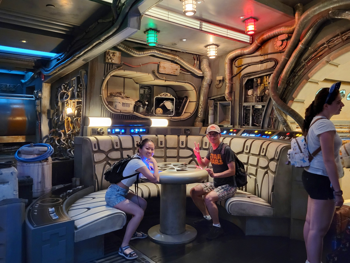 첫번째 영화인 스타워즈 4편과 또 7편에 다시 등장을 했던 밀레니엄팔콘 우주선의 라운지가 나오는데, 두번째 탑승에서는 저 데자릭(Dejarik) 홀로그램 체스판을 가운데 놓고 잠시 앉아서 사진을 찍는 여유도 생겼다.