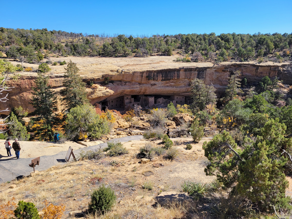 채핀메사(Chapin Mesa) 유적지에 도착했지만 박물관은 닫혀 있었고, 저기 움푹 파진 곳에 만들어진 절벽거주지(cliff dwelling)인 Spruce Tree House로 가는 길도 막아놓은 상태였다.