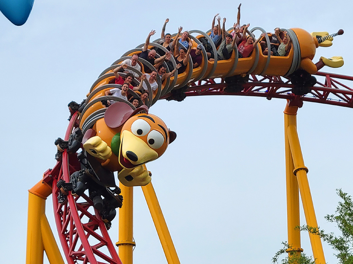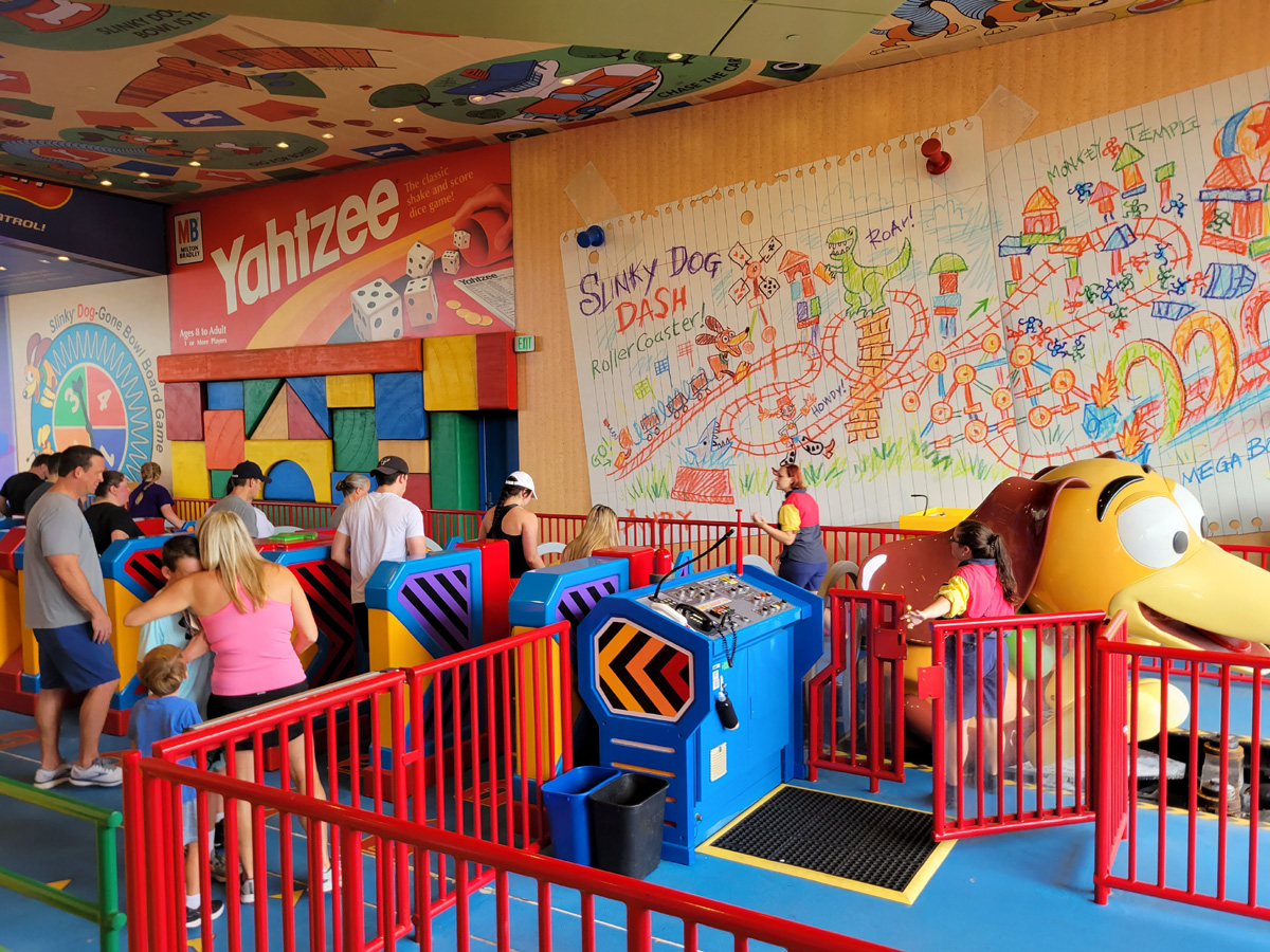 여기서 꼭 타봐야 하는 놀이기구는 바로 우디의 스프링 강아지에 올라타는 Slingky Dog Dash 롤러코스터이다.