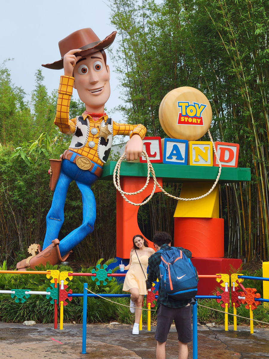 스타워즈 갤럭시에지(Star Wars: Galaxy's Edge) 북쪽에 붙어있는 토이스토리랜드(Toy Story Land)는 2018년에 만들어졌는데, 커다란 우디(Woody)가 입구에서 우리를 반겨준다. 하지만 사실은 우디가 커진 것이 아니라 이 구역에서는 우리가 <토이스토리>에 나오는 녹색의 장난감 군인들 크기로 작아진 것이었다.
